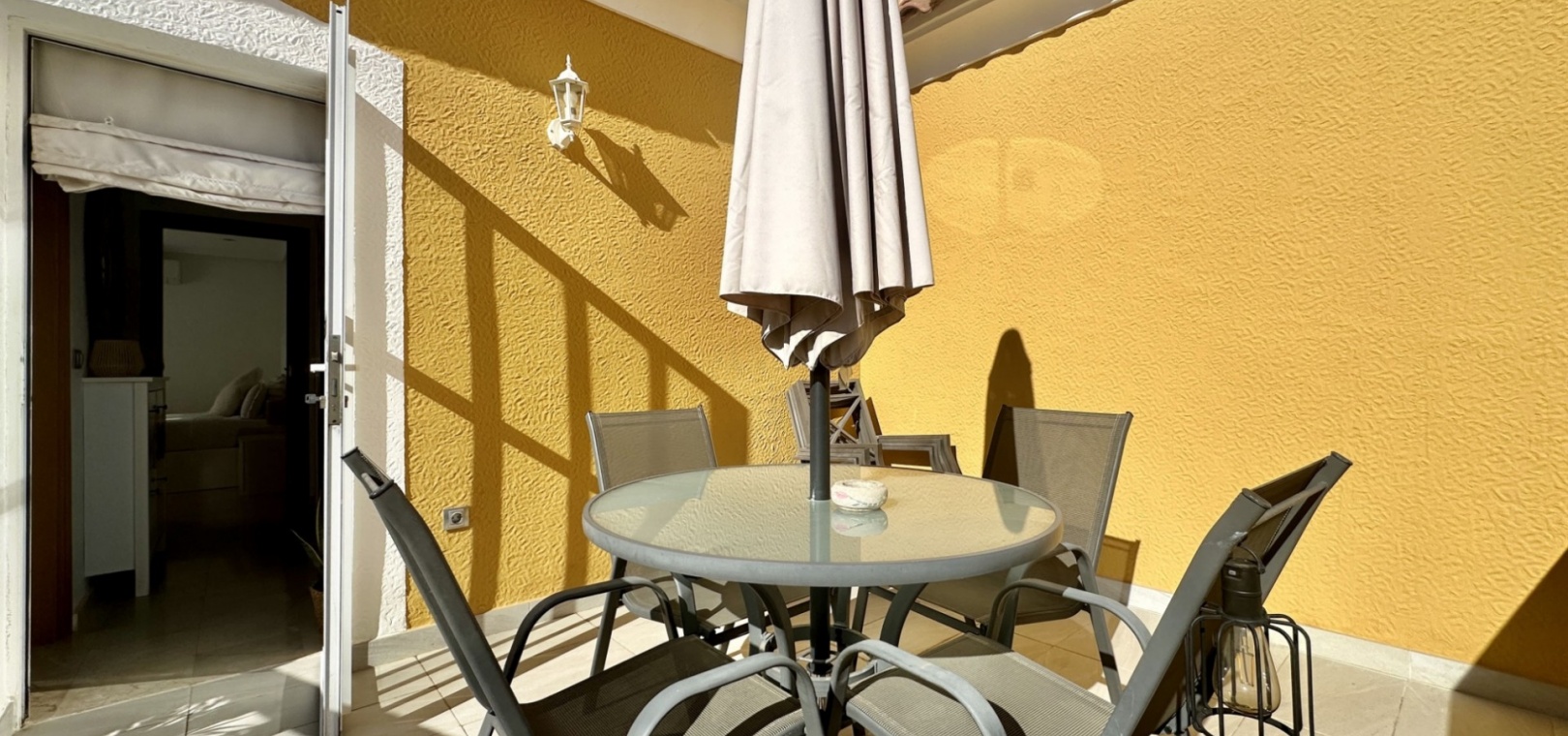 Fastigheten har tre rymliga sovrum, två badrum, ett separat fullt utrustat kök och ett ljust, luftkonditionerat vardagsrum. Fyra privata terrasser ger gott om plats för uteservering, avkoppling eller solbad.