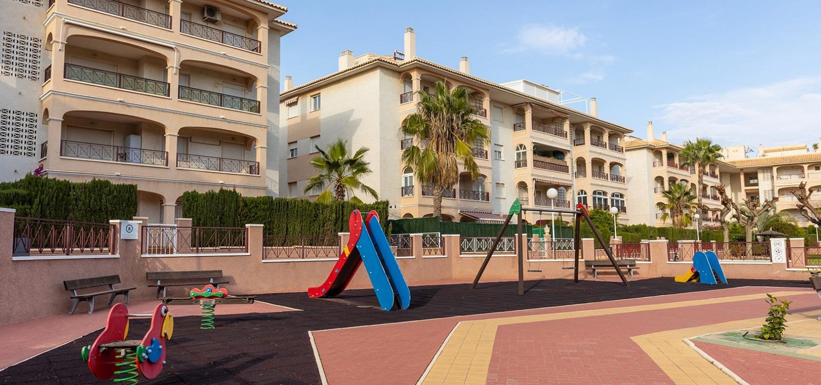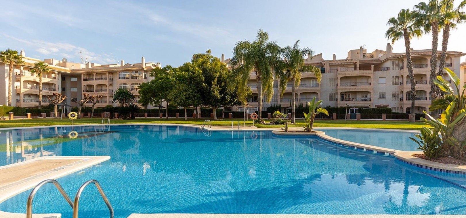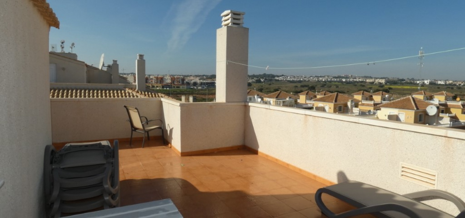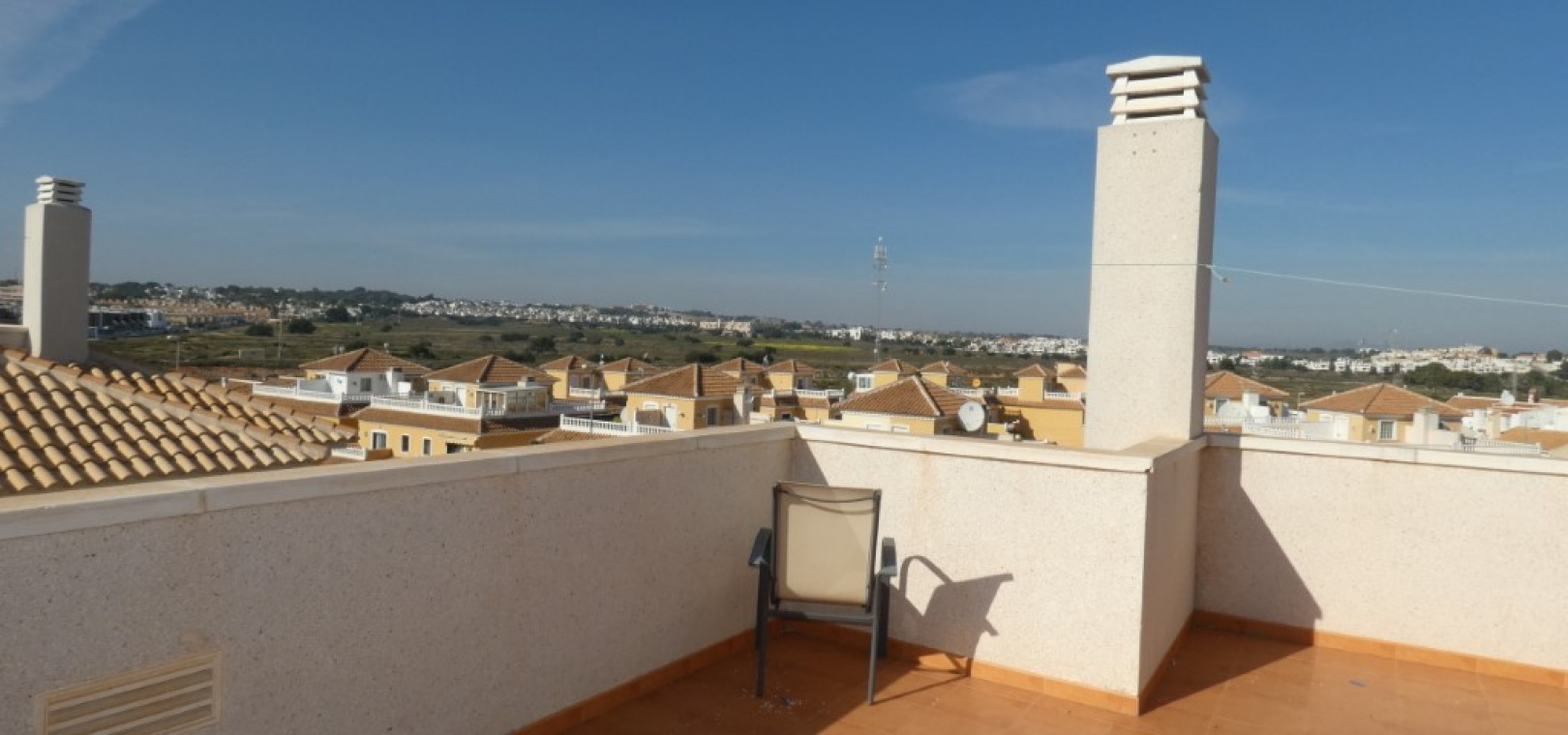 En vackert presenterad lägenhet med 3 sovrum och 2 badrum på översta våningen med privat takterrass, belägen i det eftertraktade Residencial Laguna Golf, Playa Flamenca på Costa Blanca.