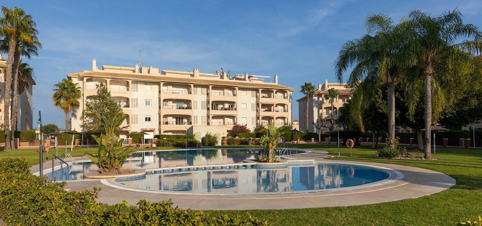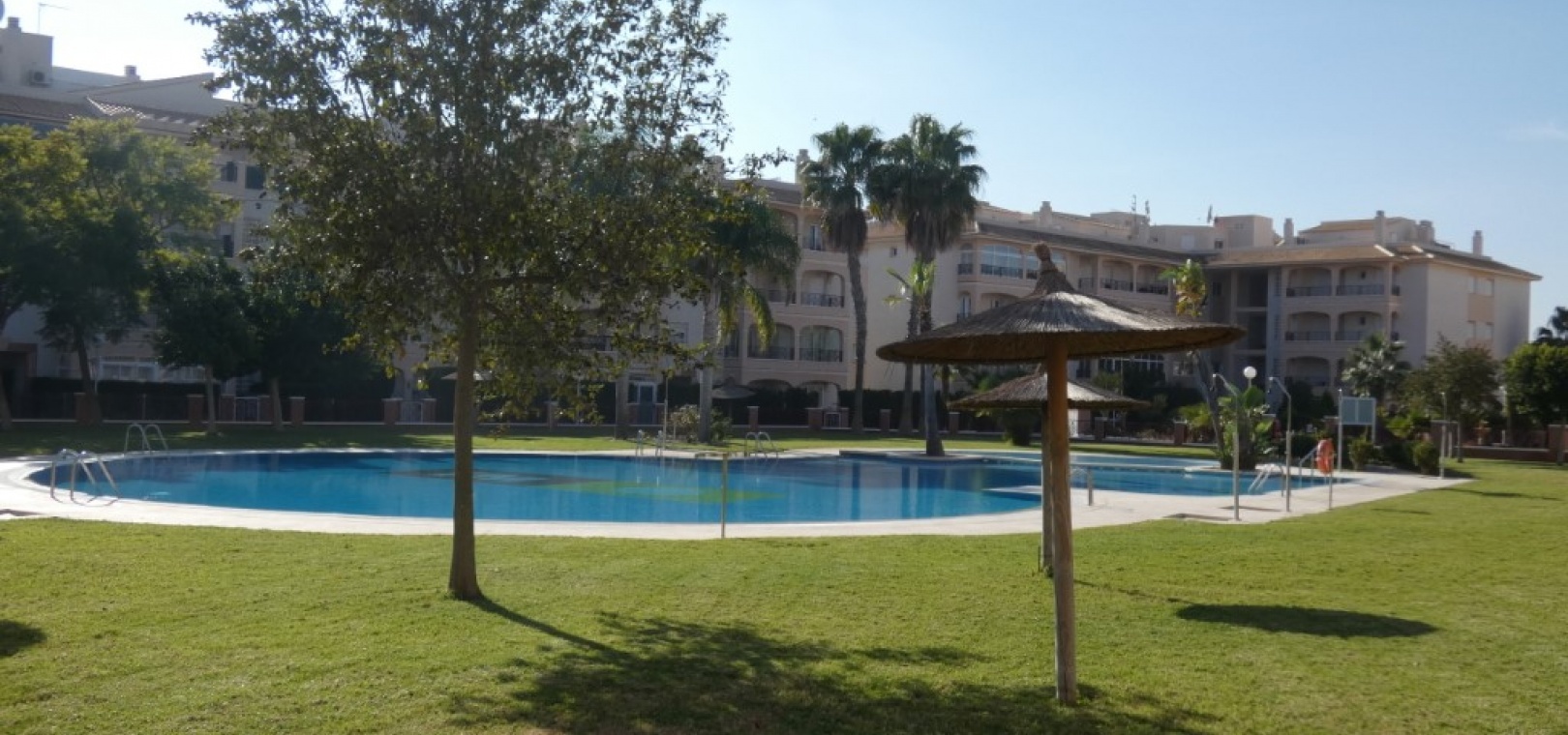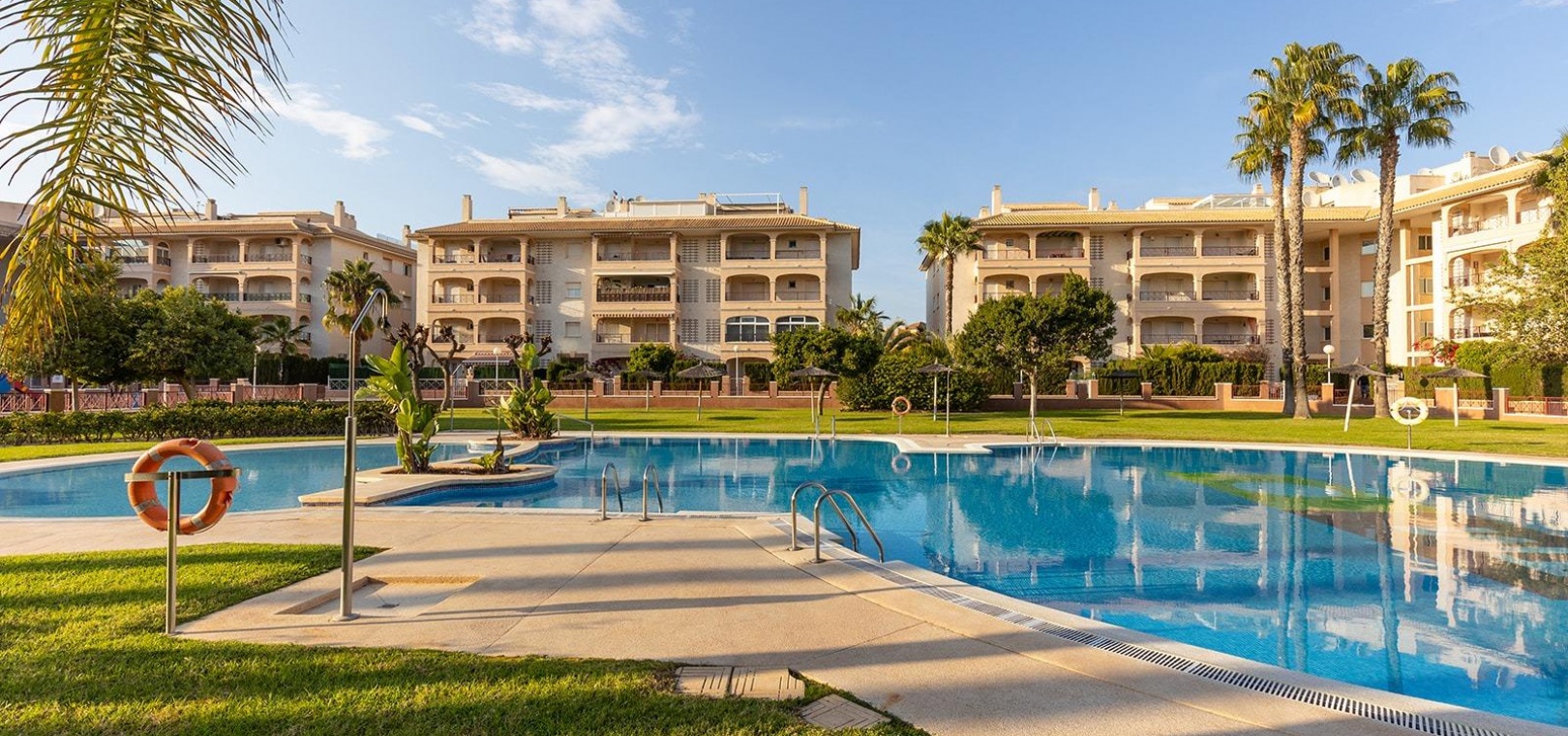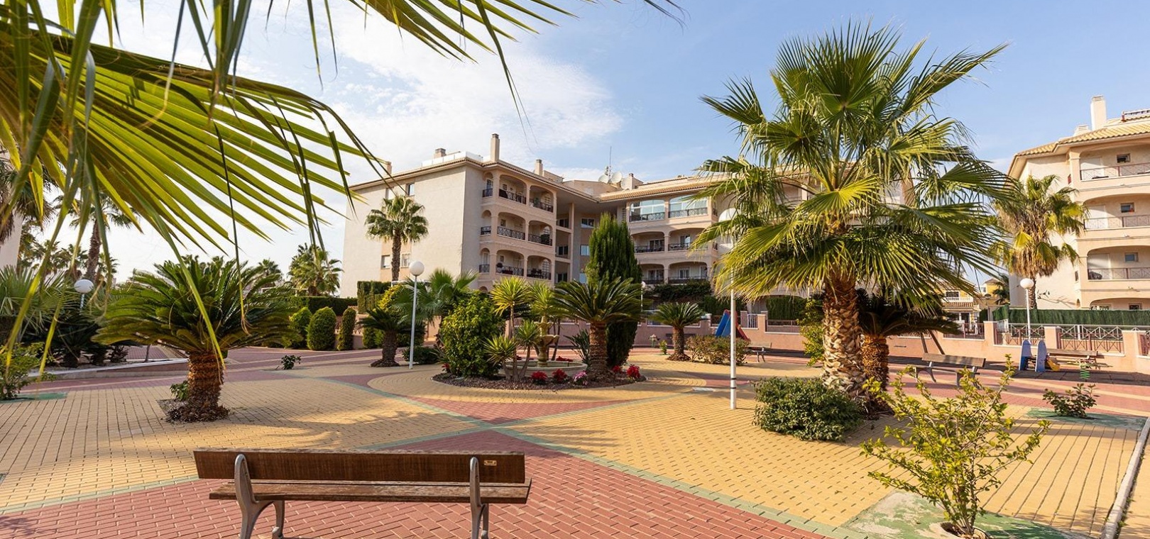 En vackert presenterad lägenhet med 3 sovrum och 2 badrum på översta våningen med privat takterrass, belägen i det eftertraktade Residencial Laguna Golf, Playa Flamenca på Costa Blanca.