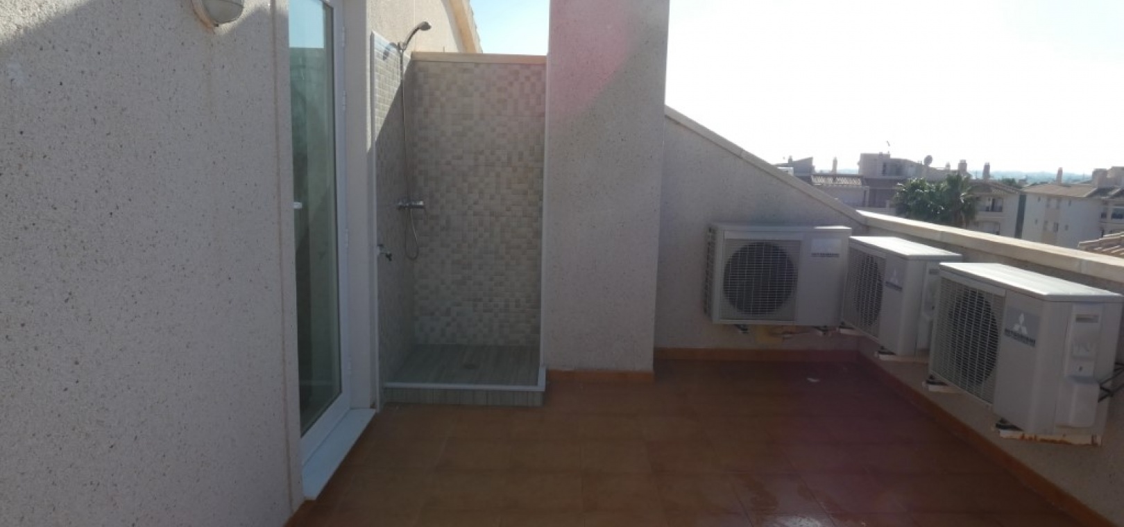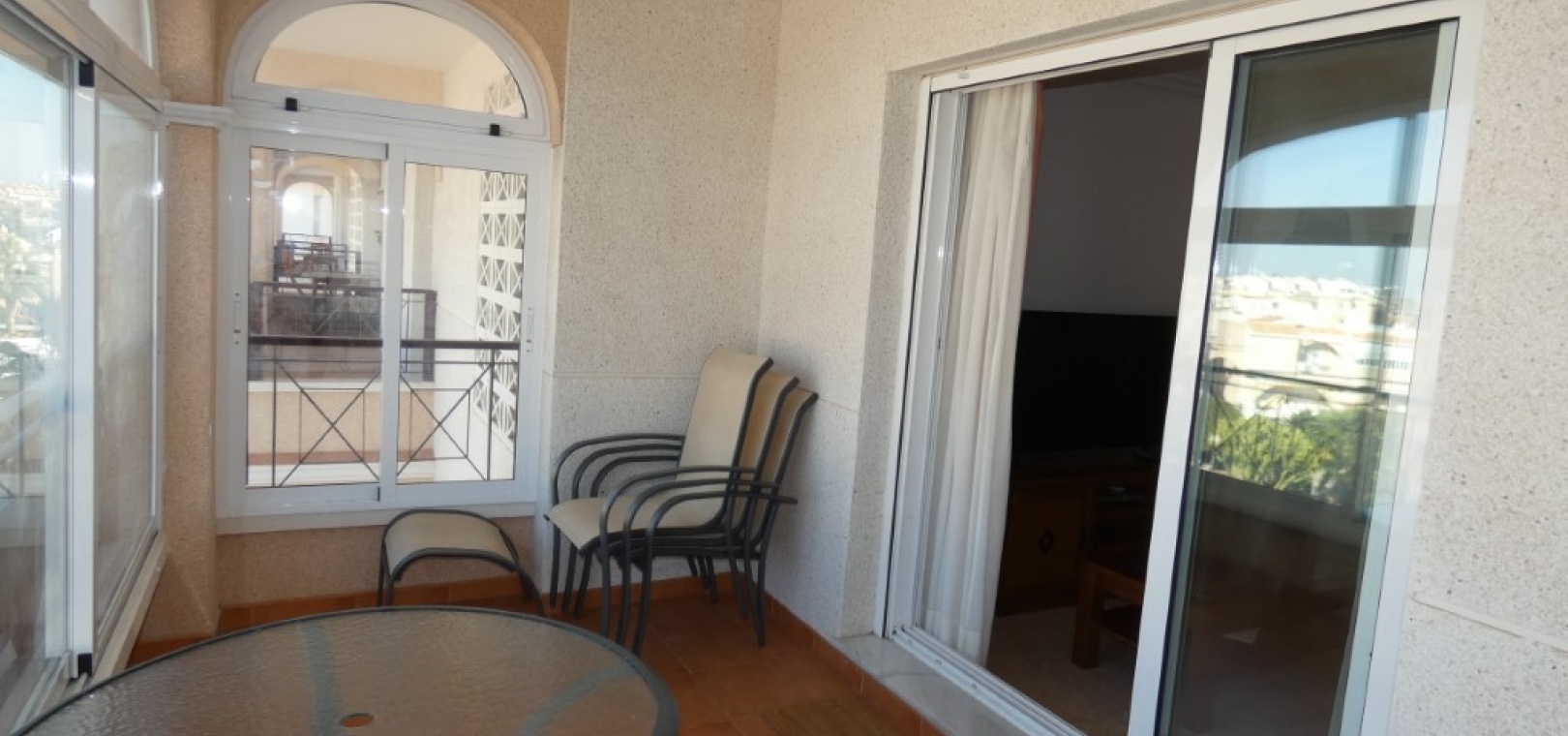 Rymlig vardagsrums-/matplats Öppen planlösning, fullt utrustat kök Separat tvättstuga Två dubbelrum med inbyggda garderober, inklusive ett sovrum med eget badrum Modernt gästduschrum Inglasad balkong för året runt-bruk Intern trappa som leder till det tredje sovrummet och det imponerande privata solrummet på taket , perfekt för solbad och underhållning.