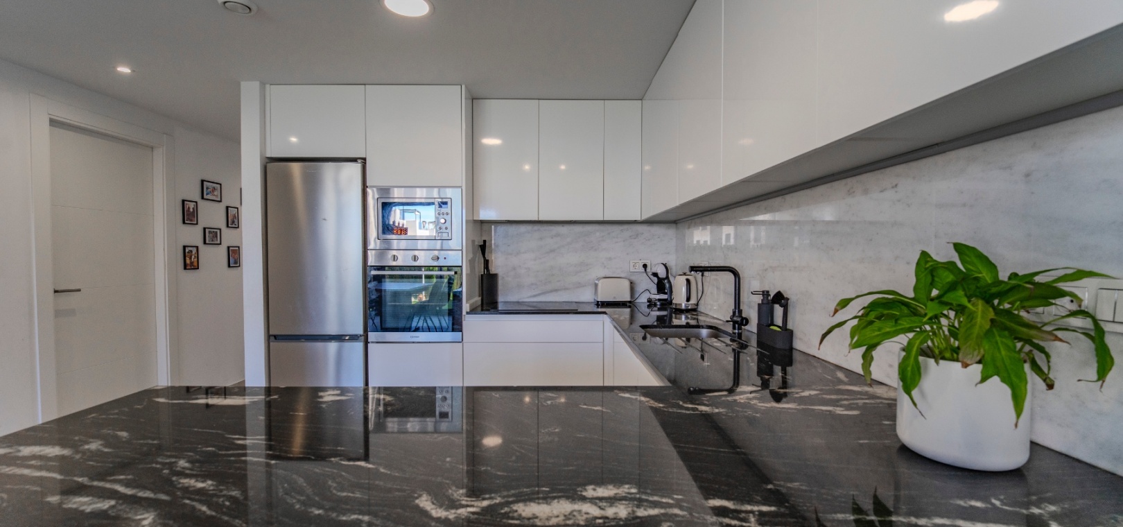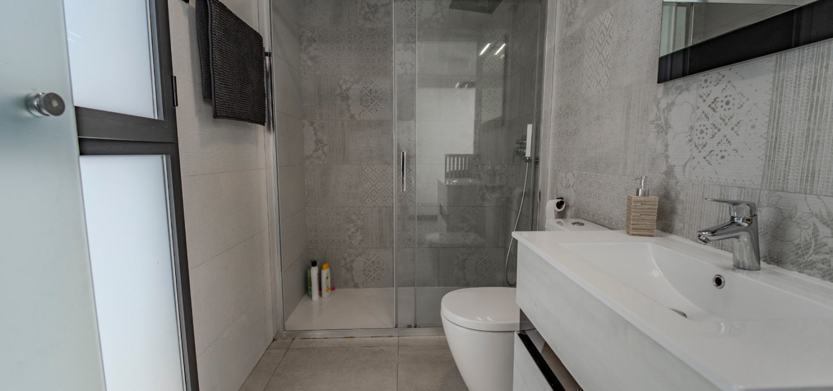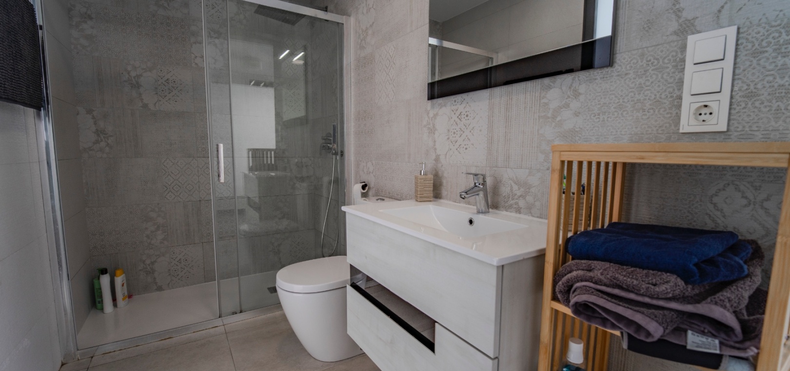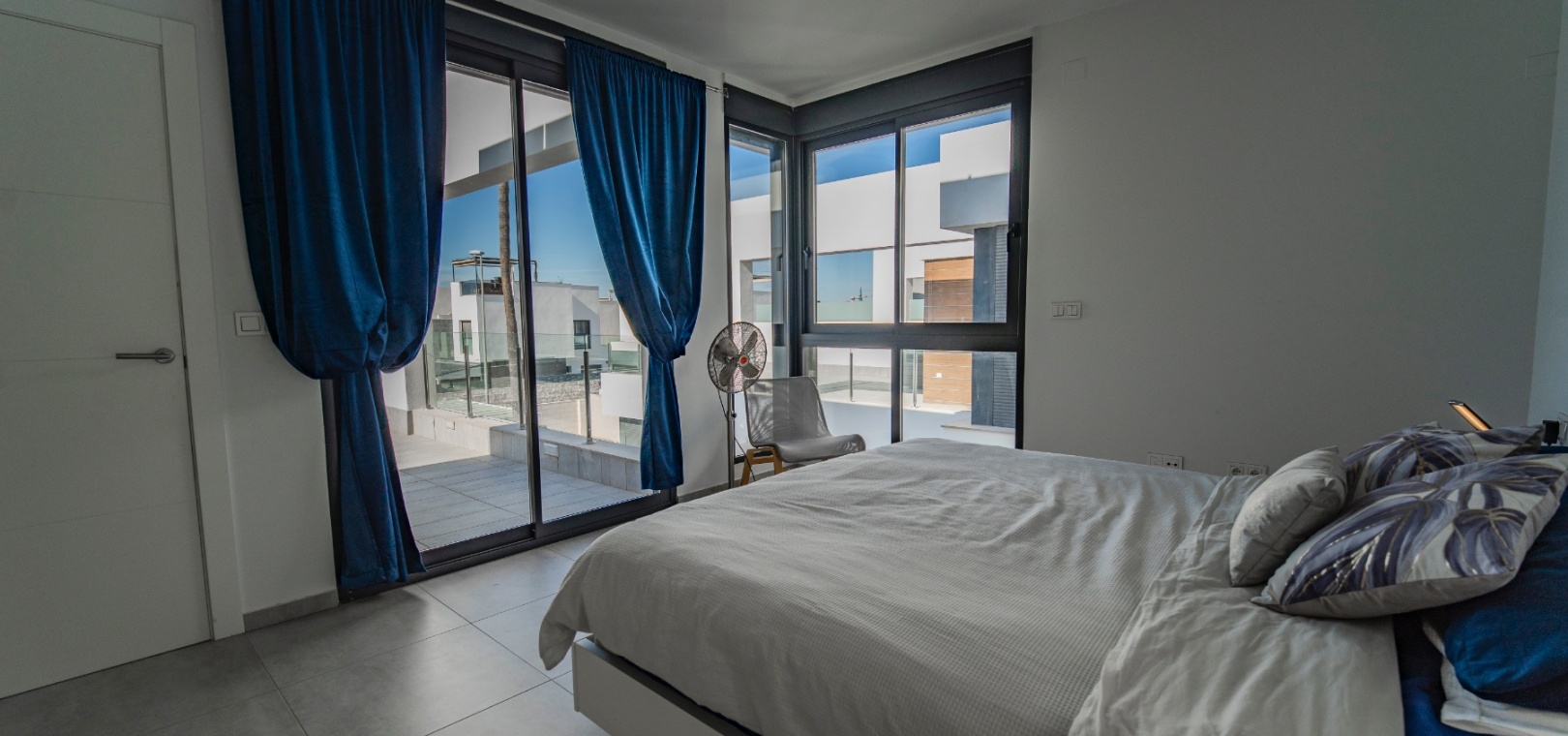 3 sovrum | 3 badrum Öppen planlösning mellan vardagsrum, matsal och kök Högblankt modernt kök med integrerade vitvaror Golvvärme i alla badrum Kanaliserad luftkonditionering på bottenvåningen + enhet på övervåningen Master-svit med omklädningsrum, eget badrum och tillgång till solarium Privat pool, utomhusdusch och anlagd trädgård Parkering utanför vägen med elektrisk grind Solpaneler med batterilagringssystem IBI/Suma: 465 € per år