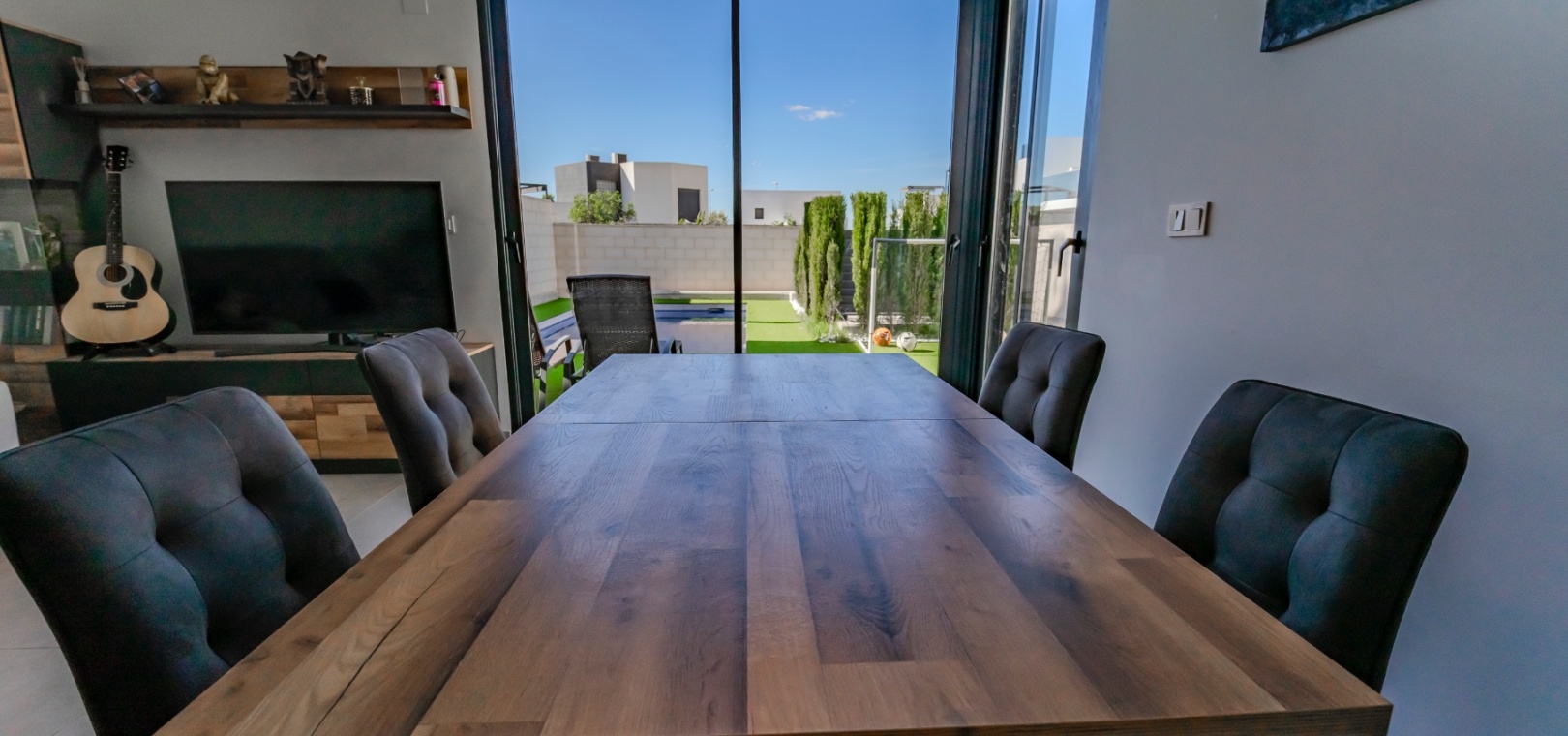 Upplev ett elegant och modernt boende i denna vackert designade villa belägen i den eftertraktade staden Benijófar på Spaniens Costa Blanca. Med förstklassiga ytbehandlingar, energieffektiva lösningar och en genomtänkt öppen planlösning erbjuder detta hem en perfekt blandning av stil, komfort och praktiska egenskaper – perfekt för både permanent boende och lyxiga semestrar.