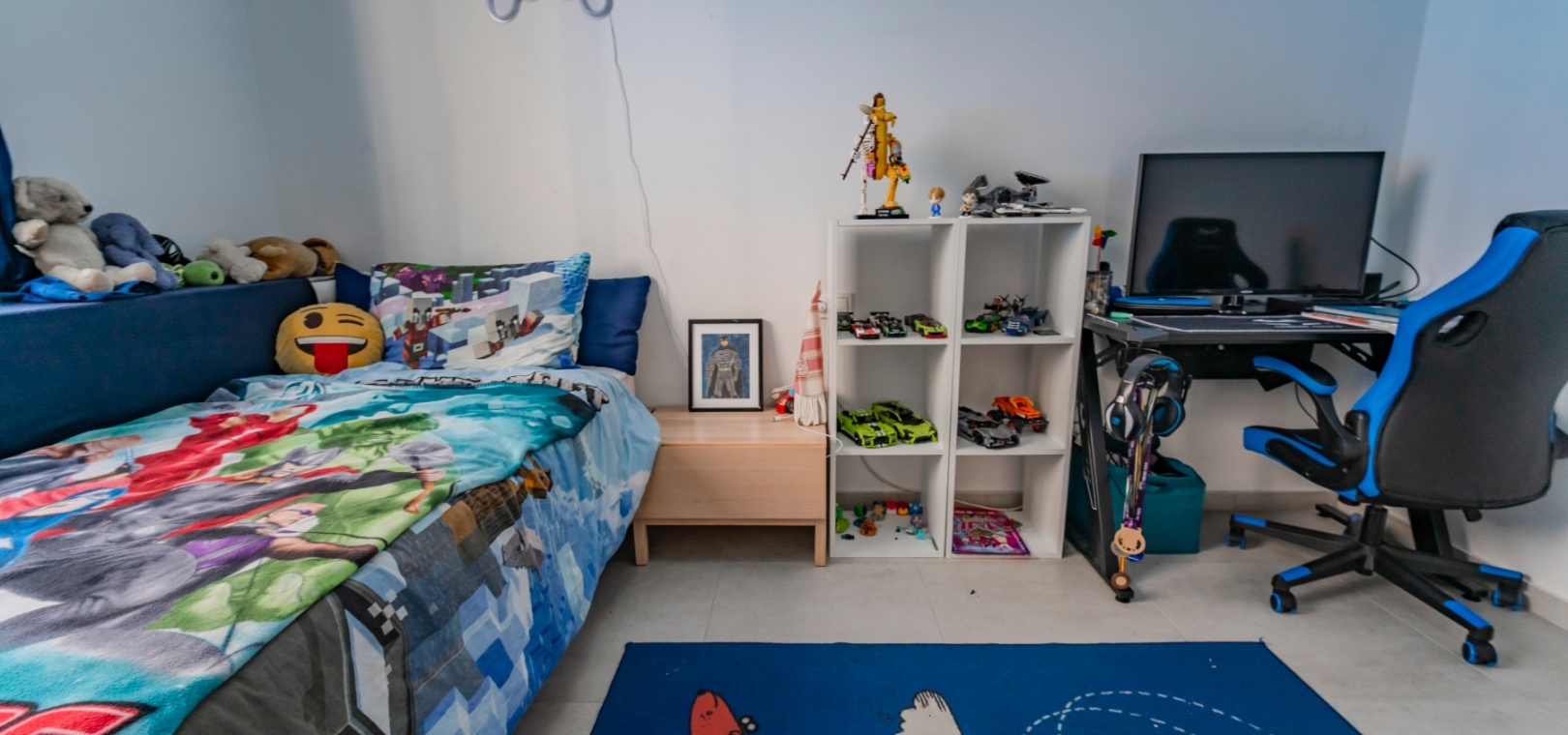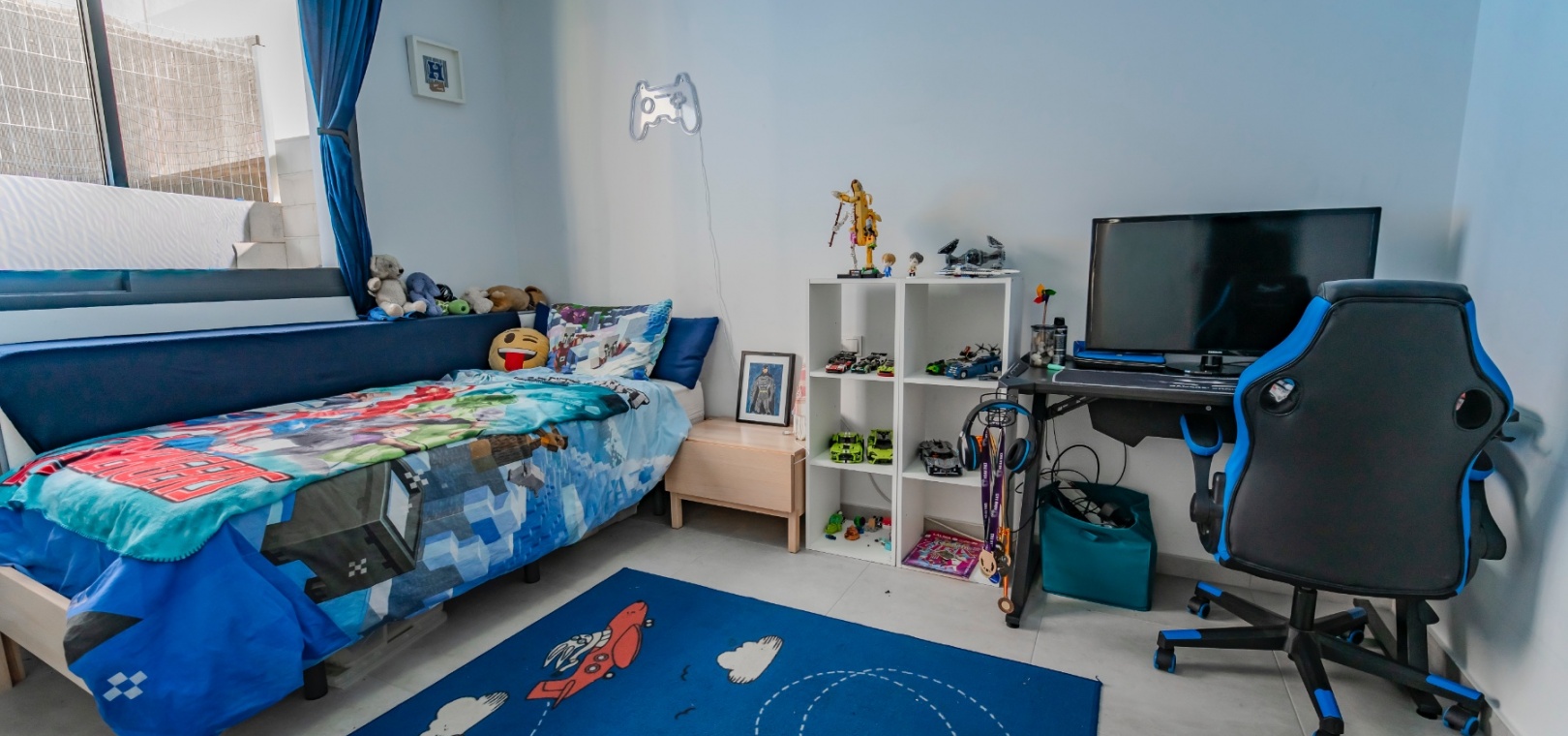 Master-sviten erbjuder en fridfull tillflyktsort, komplett med en klädkammare, ett elegant badrum och direkt tillgång till det privata solariet. Denna generösa terrass, som också är tillgänglig från avsatsen, erbjuder fantastisk utsikt över bergen – perfekt för solbad, middagar eller kvällsavkoppling.