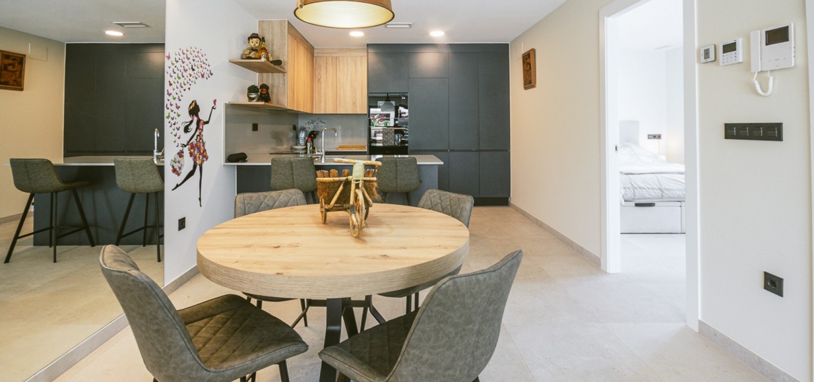 Denna moderna, eleganta och inflyttningsklara lägenhet är perfekt för att njuta av Costa Blanca-livsstilen omedelbart. En sällsynt möjlighet att äga ett bekvämt hem i ett lugnt men ändå väl förbunden läge.
