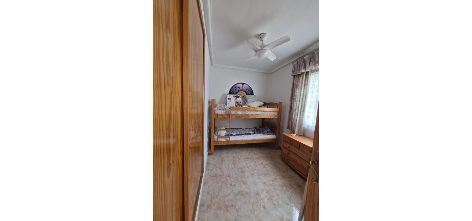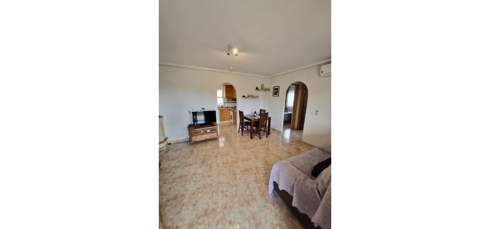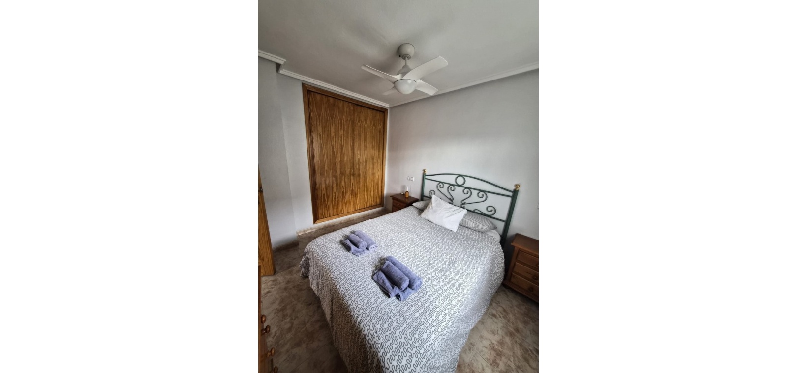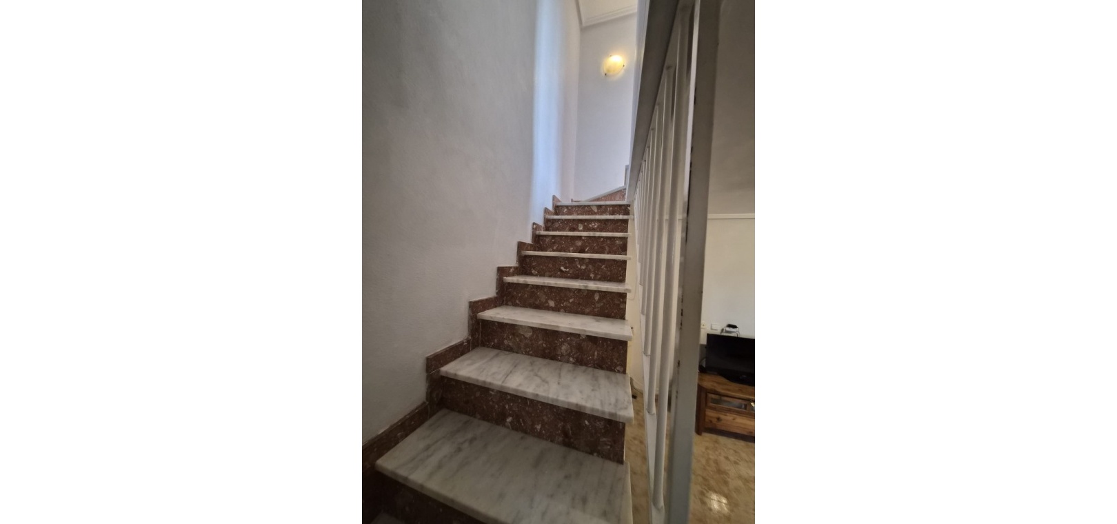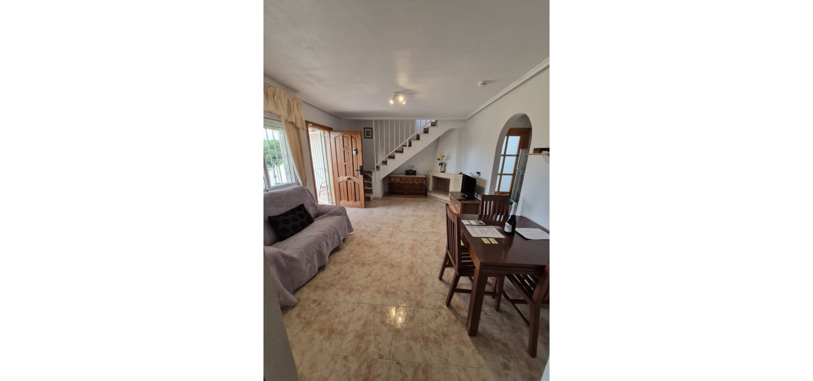 Bottenvåning: Rymligt vardagsrum/matrum med öppen spis och varm och kall luftkonditionering, separat kök, 2 x dubbelrum med inbyggda garderober och 1 x familjebadrum. Undervåning: Vardagsrum/matsal, separat kök, 2 x dubbelrum och 1 x duschrum. Första våningen: Huvudsovrum med dubbelsäng och dörrar som leder till en privat balkong, plus ett duschrum.