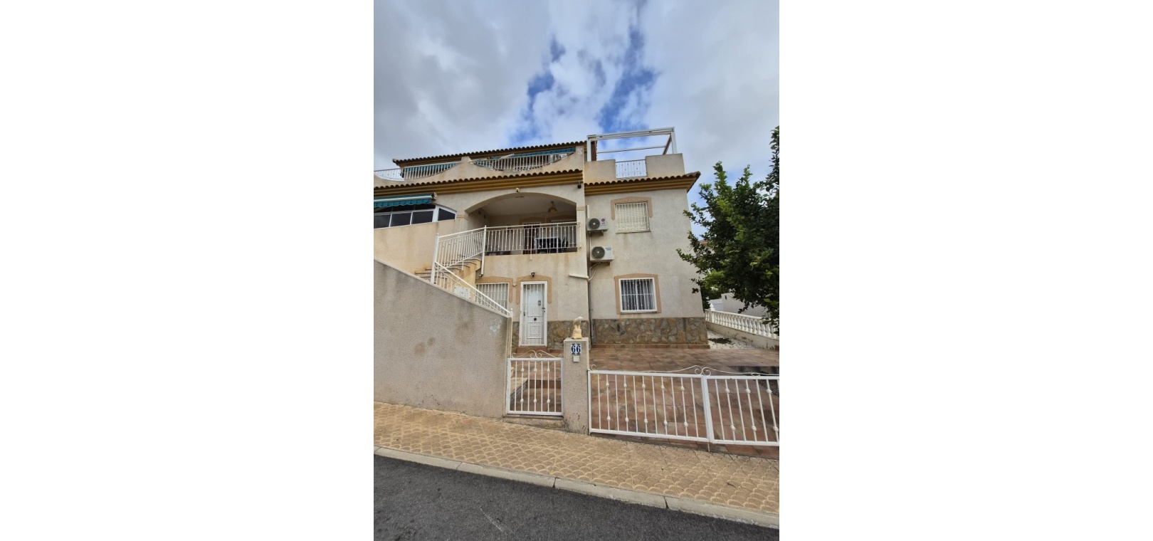 Detta attraktiva fyrbäddshus med 5 sovrum och 3 badrum ligger i det populära gated communityt Residencial Iria, Playa Flamenca. Säljs i gott skick och är inflyttningsklart.