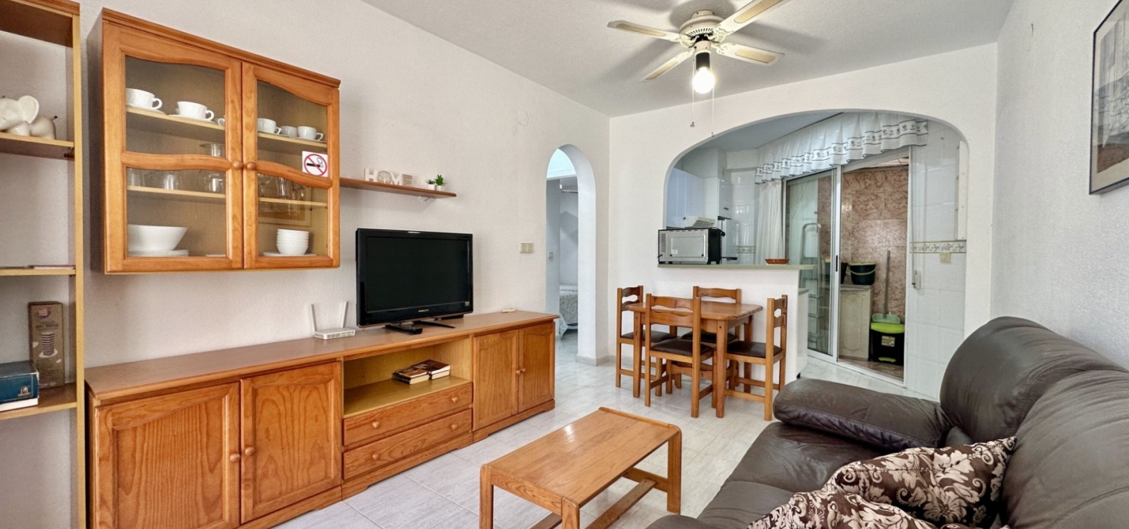 Denna välskötta lägenhet ligger i ett privat bostadskomplex i Playa Flamenca och erbjuder bekvämt boende i ett plan med tillgång till attraktiva gemensamma faciliteter.