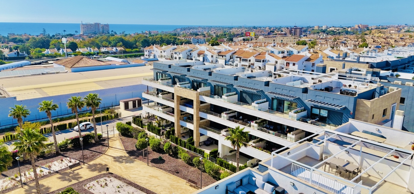 Denna exklusiva urbanisering erbjuder exceptionella faciliteter i resortstil, inklusive fyra pooler (en uppvärmd), ett fullt utrustat gym , anlagda promenadområden och en poolbar , vilket skapar en enastående livsstilsmiljö.