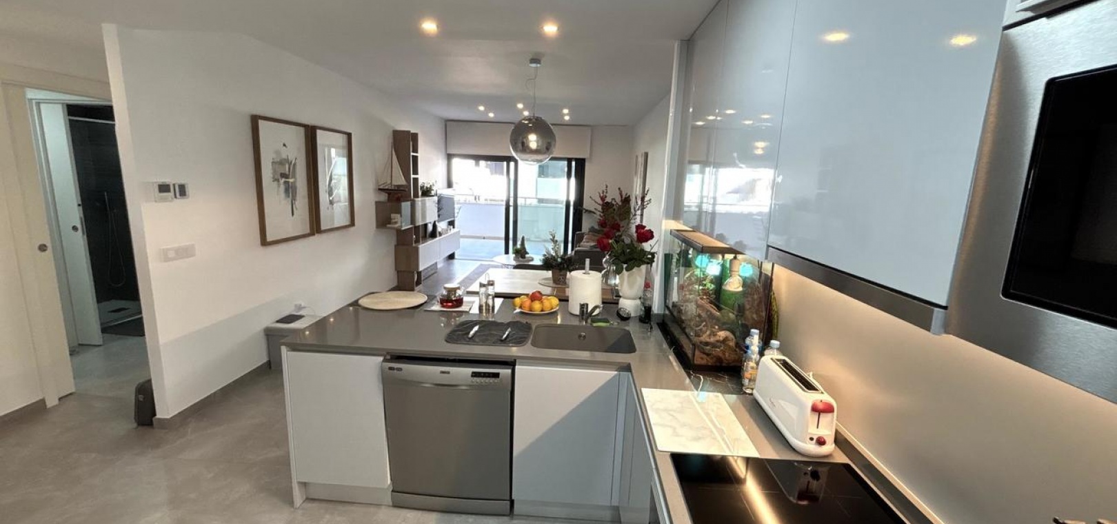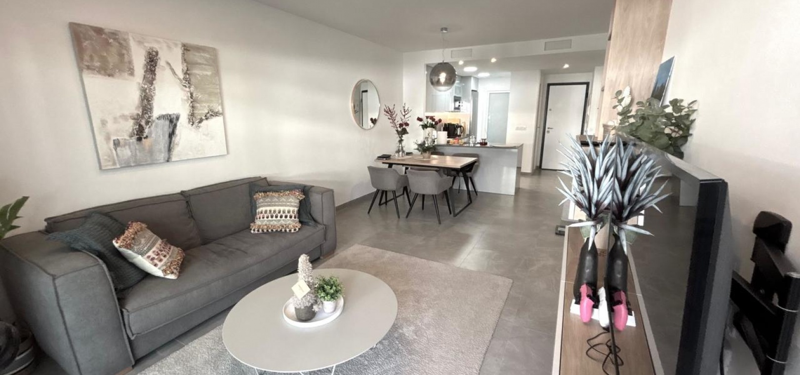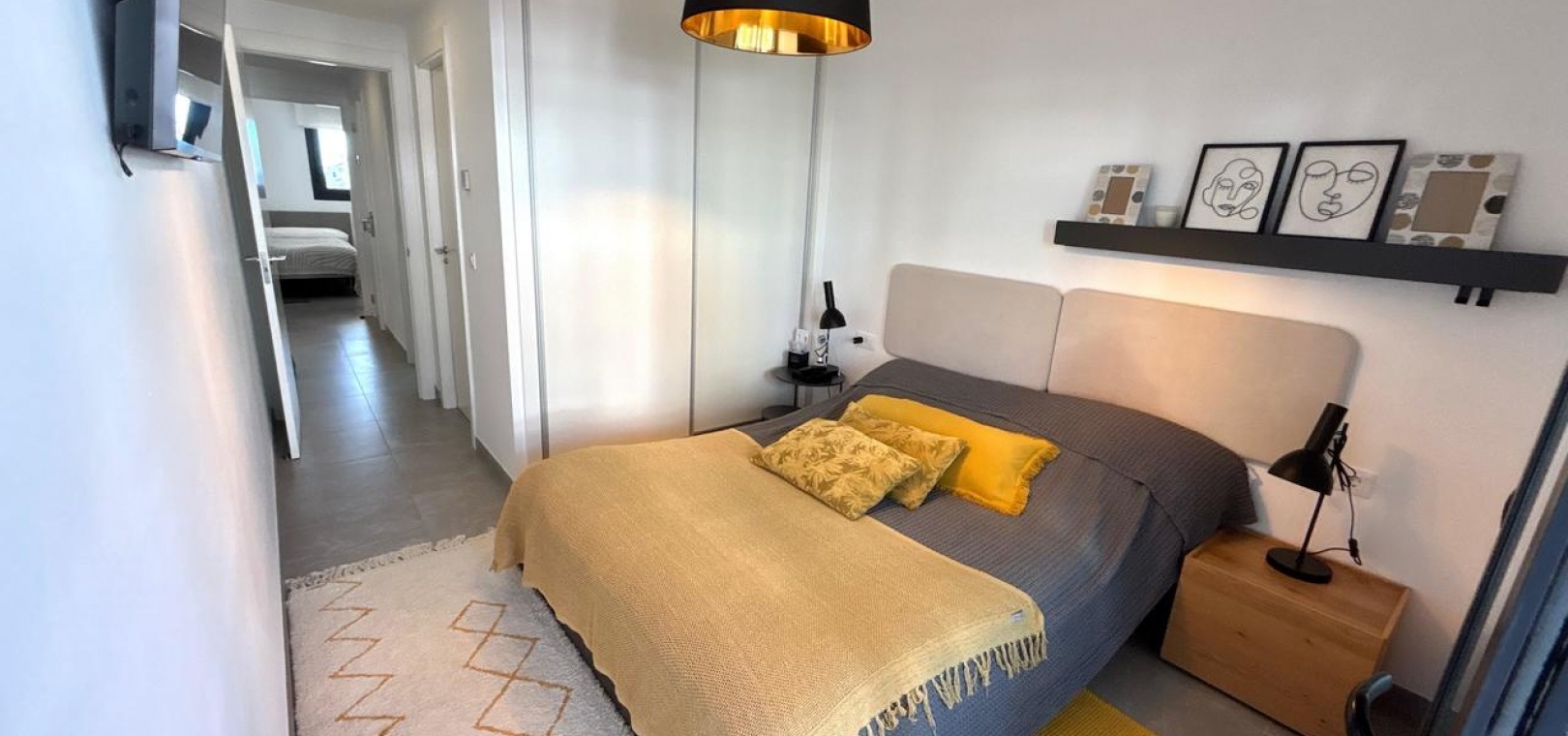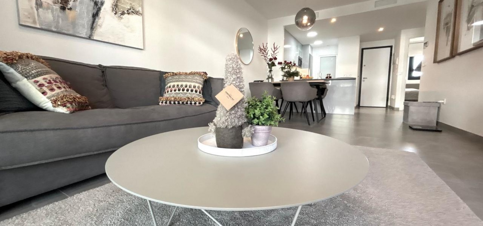 Denna helt nya, moderna lägenhet ligger i den mycket eftertraktade Flamenca Village och har en balkong i sydvästläge med härlig utsikt över det vackert underhållna gemensamma poolområdet.