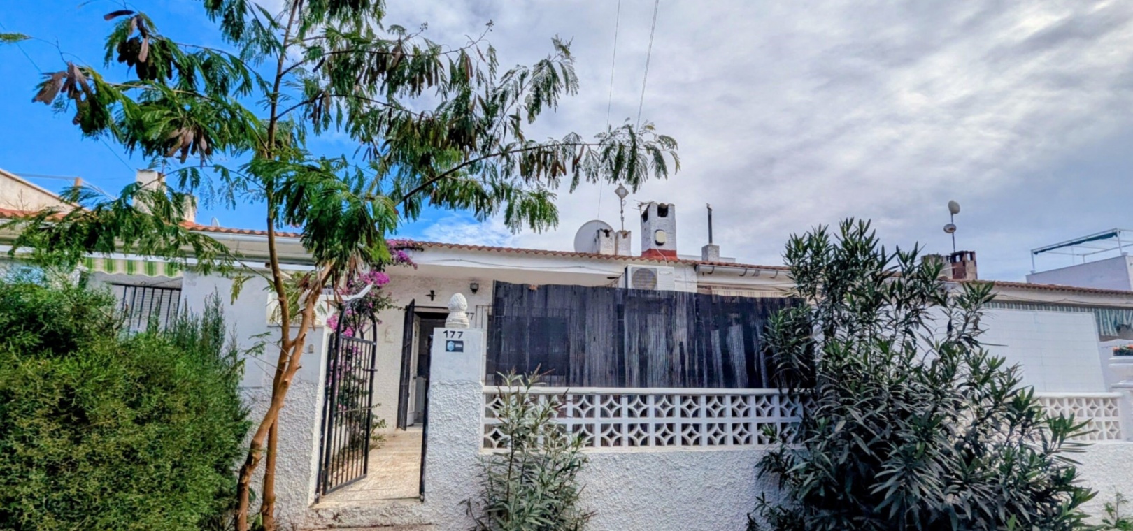 Denna bungalow med två sovrum och ett badrum ligger i den lugna och eftertraktade urbanisationen Pinomar, omgiven av tallskog och natur, bara en kort bit från stränderna i Guardamar och La Mata.