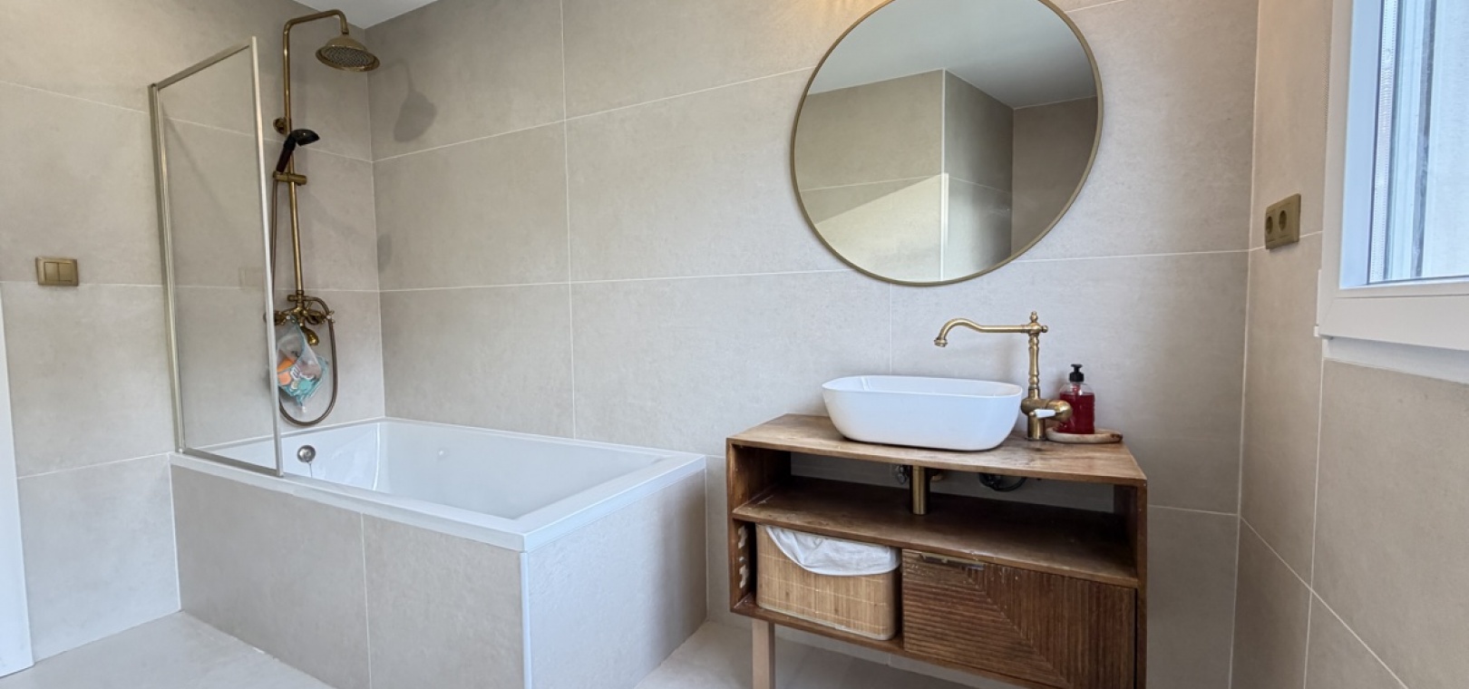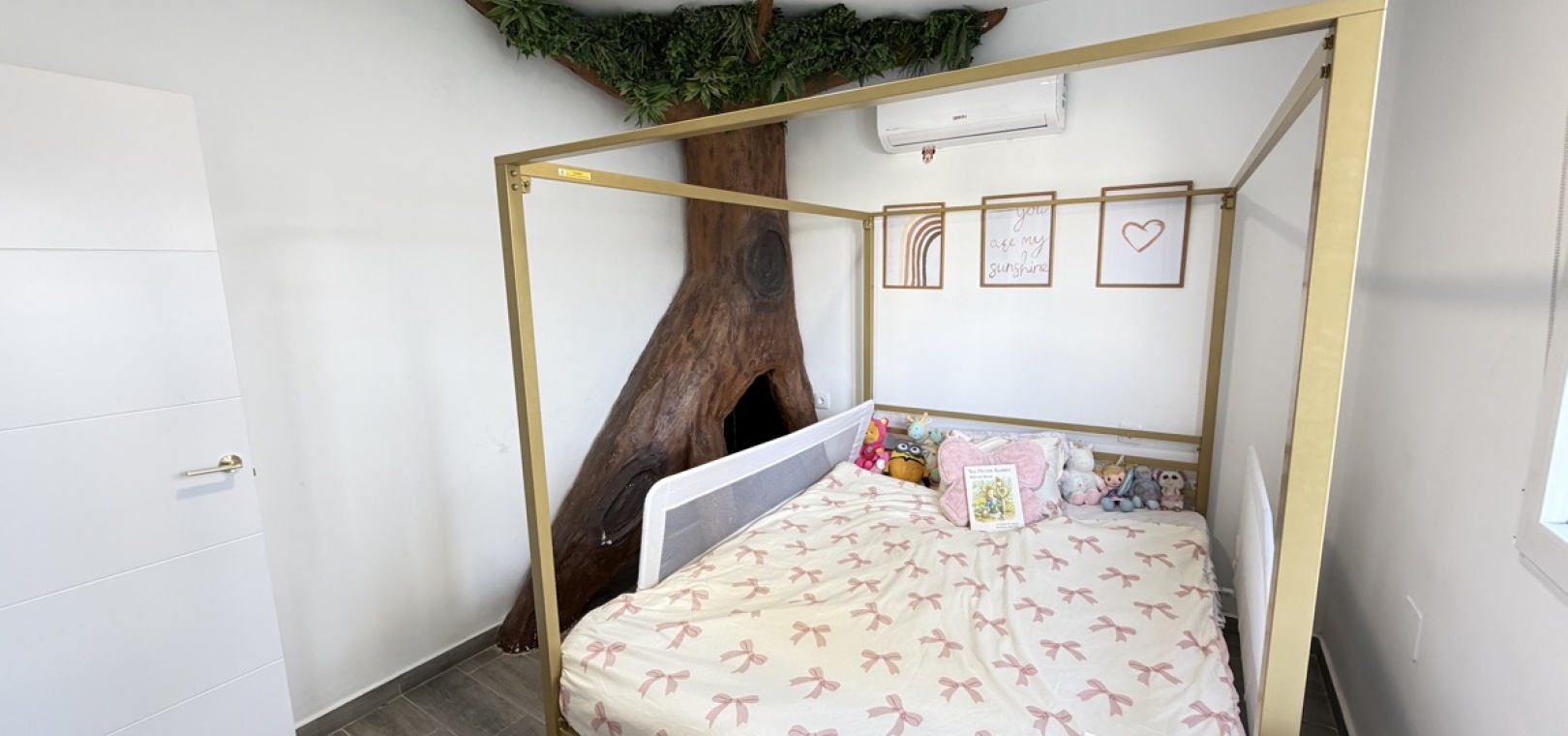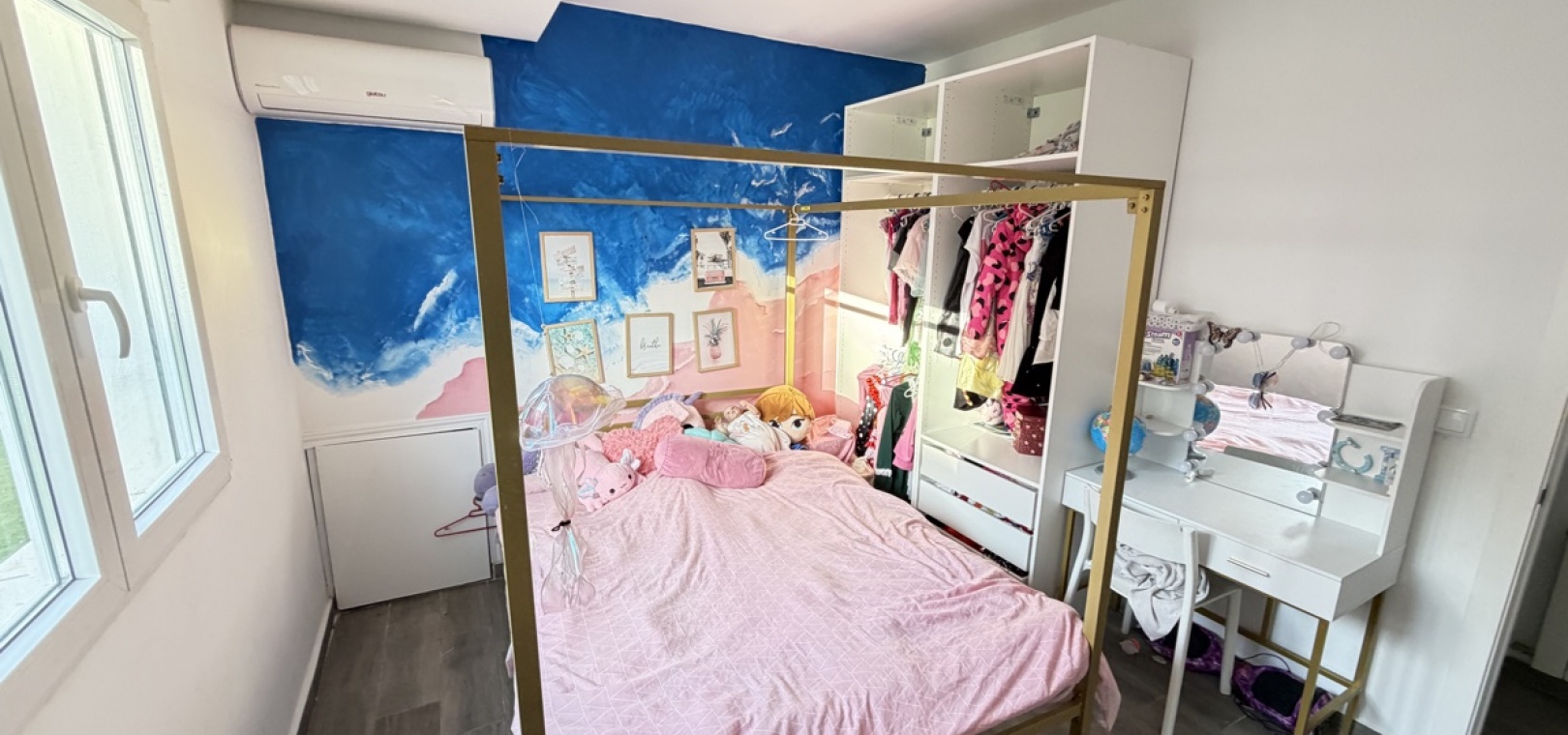 Den huvudsakliga våningen rymmer fyra sovrum , varav ett för närvarande är konfigurerat som ett hemmakontor med en diskret nedfällbar dubbelsäng, vilket erbjuder utmärkt flexibilitet. En dold dörr i köket leder till ytterligare tre generöst tilltagna sovrum , alla betjänade av ett vackert inrett familjebadrum med badkar.