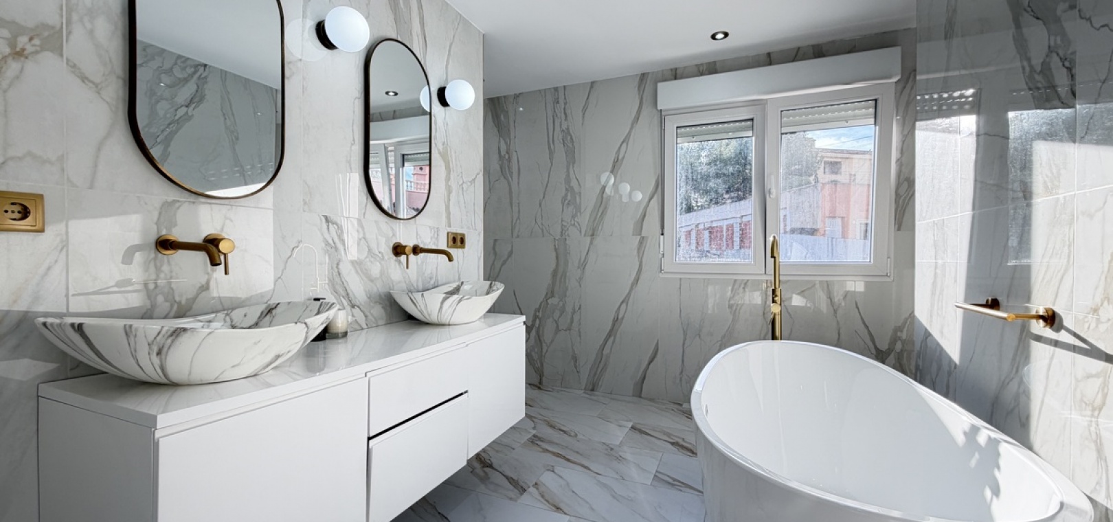 Internt har villan totalrenoverats till en exceptionell standard . En välkomnande entréhall leder in i ett slående öppet kök med köksö och matplats, som sömlöst flyter över i ett ljust, rymligt vardagsrum med direkt tillgång till poolen och trädgården – vilket skapar en idealisk inomhus- och utomhusupplevelse.