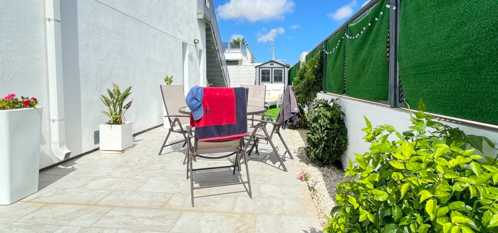 Ytterligare funktioner inkluderar en separat entrégrind , privat parkeringsplats och rikligt naturligt ljus i hela huset, vilket förstärker känslan av rymd och låter dig njuta av det spanska solskenet till fullo. Båda sovrummen är möblerade med dubbelsängar och badrummen är fullt utrustade. Villan säljs fullt möblerad och är redo att flytta in eller hyras ut.