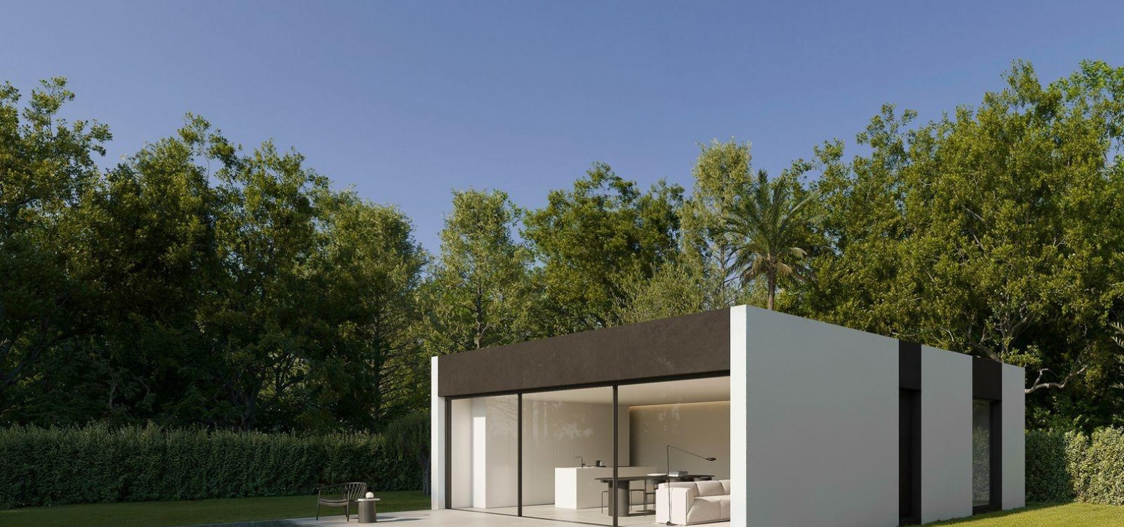 Denna nybyggda minimalistiska villa ligger i utkanten av Benidorm, på den vackra Medelhavskusten Costa Blanca. Fastigheten är utformad som ett exklusivt men ekonomiskt hållbart alternativ på en alltmer konkurrensutsatt fastighetsmarknad och kombinerar funktionalitet, modern design och komfort i en planlösning i ett plan.