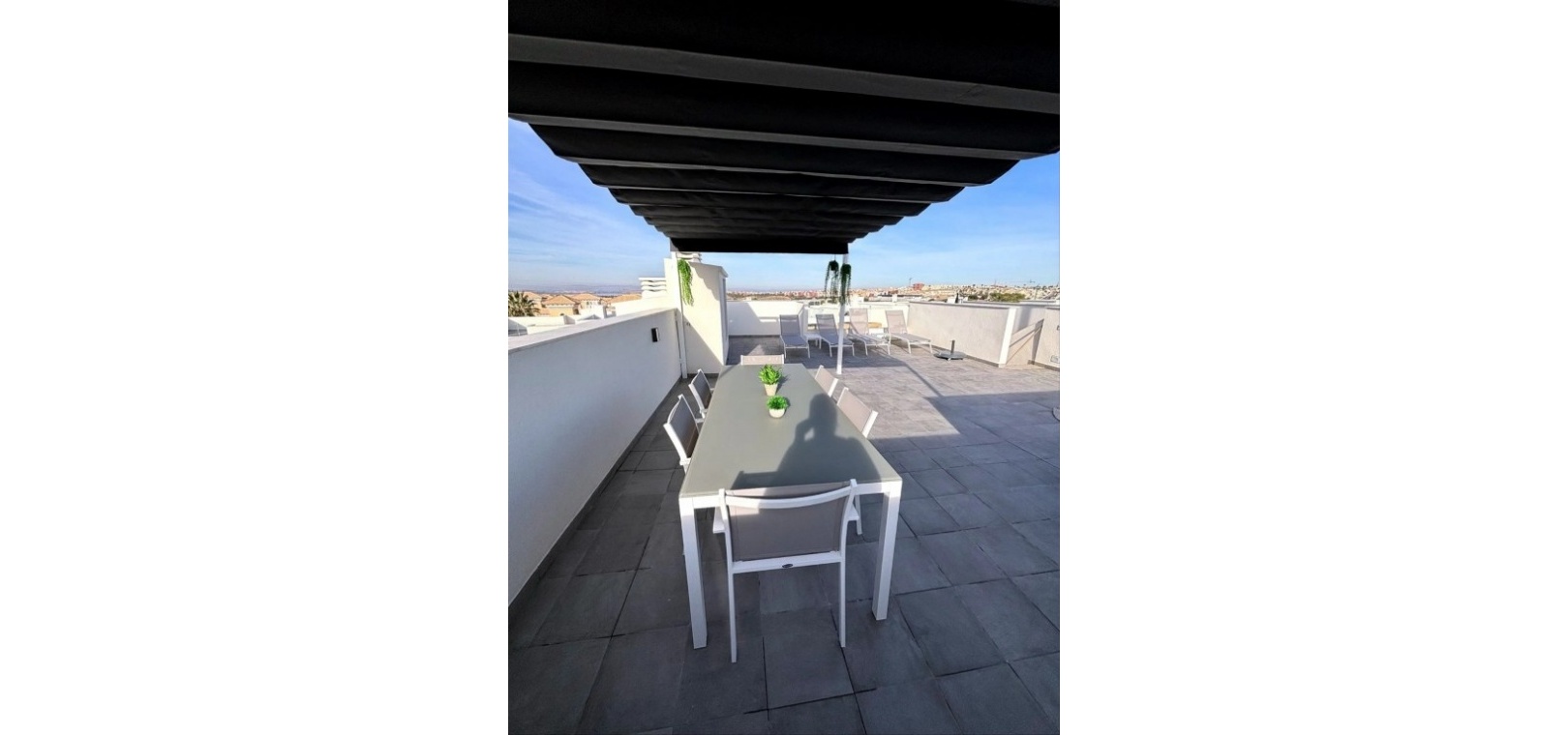 En framträdande detalj i denna takvåning är den imponerande privata takterrassen. Den är designad för utomhusbruk och inkluderar en markis, grillplats, loungeutrymme, utomhusdusch, förråd, solstolar och en stor matplats – perfekt för att umgås eller helt enkelt njuta av den spektakulära utsikten med familj och vänner.