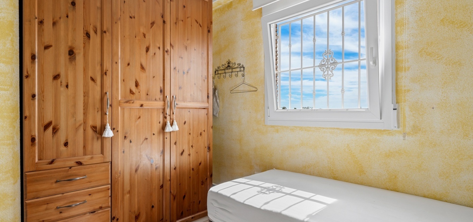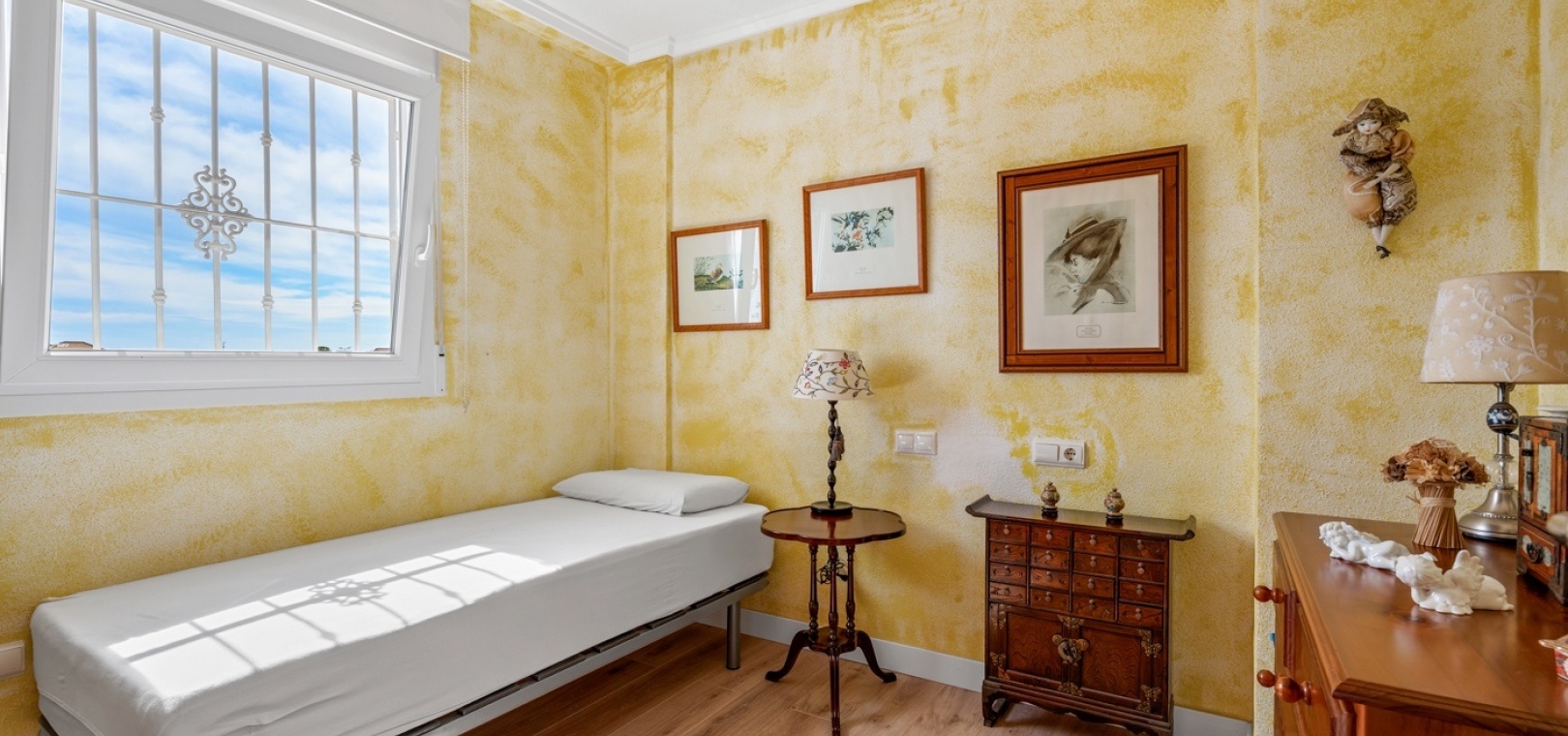 På övervåningen finns sovrumsdelen med tre sovrum och ett komplett familjebadrum. Ett av sovrummen har en privat balkong som erbjuder en lugn tillflyktsort utomhus.