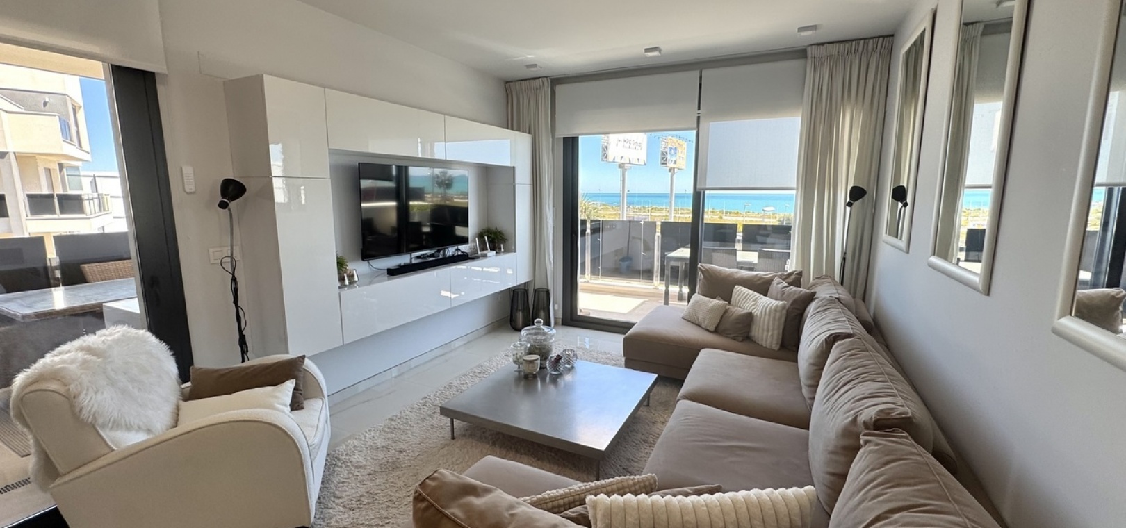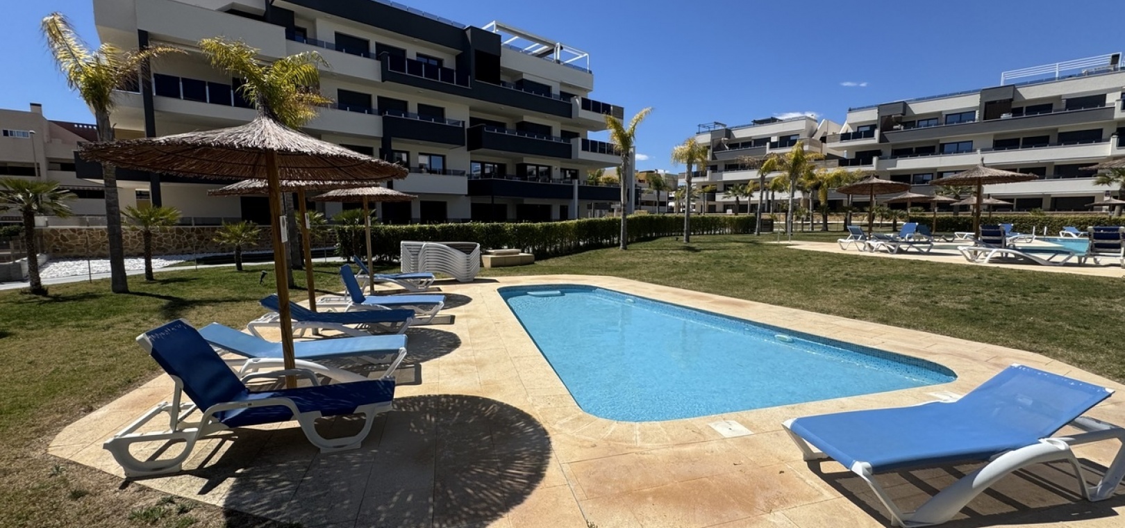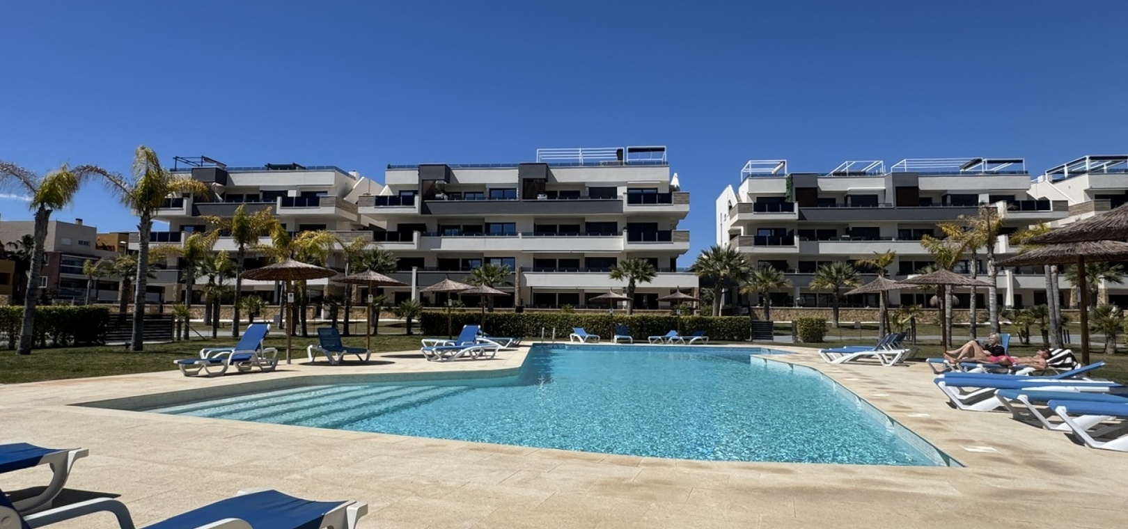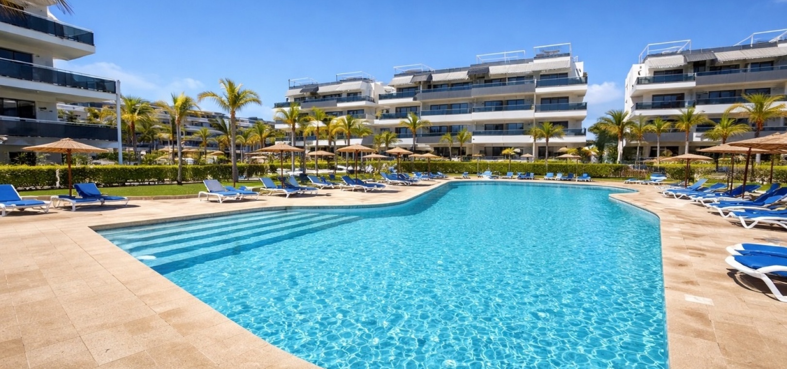 Belägen i det prestigefyllda Sunrise Deluxe Complex, erbjuder denna exceptionella lägenhet med tre sovrum och två badrum ett rymligt och exklusivt kustboende i hjärtat av Playa Flamenca.