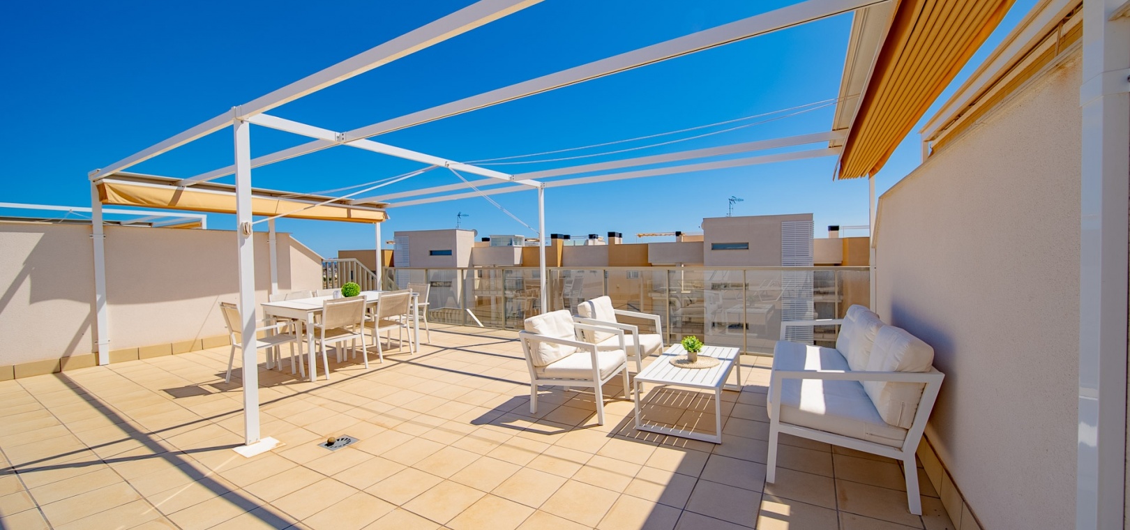 Denna takvåning är ett idealiskt val för ett fritidshus, permanent boende eller en högefterfrågad hyresinvestering i ett av de mest populära områdena på Costa Blanca.