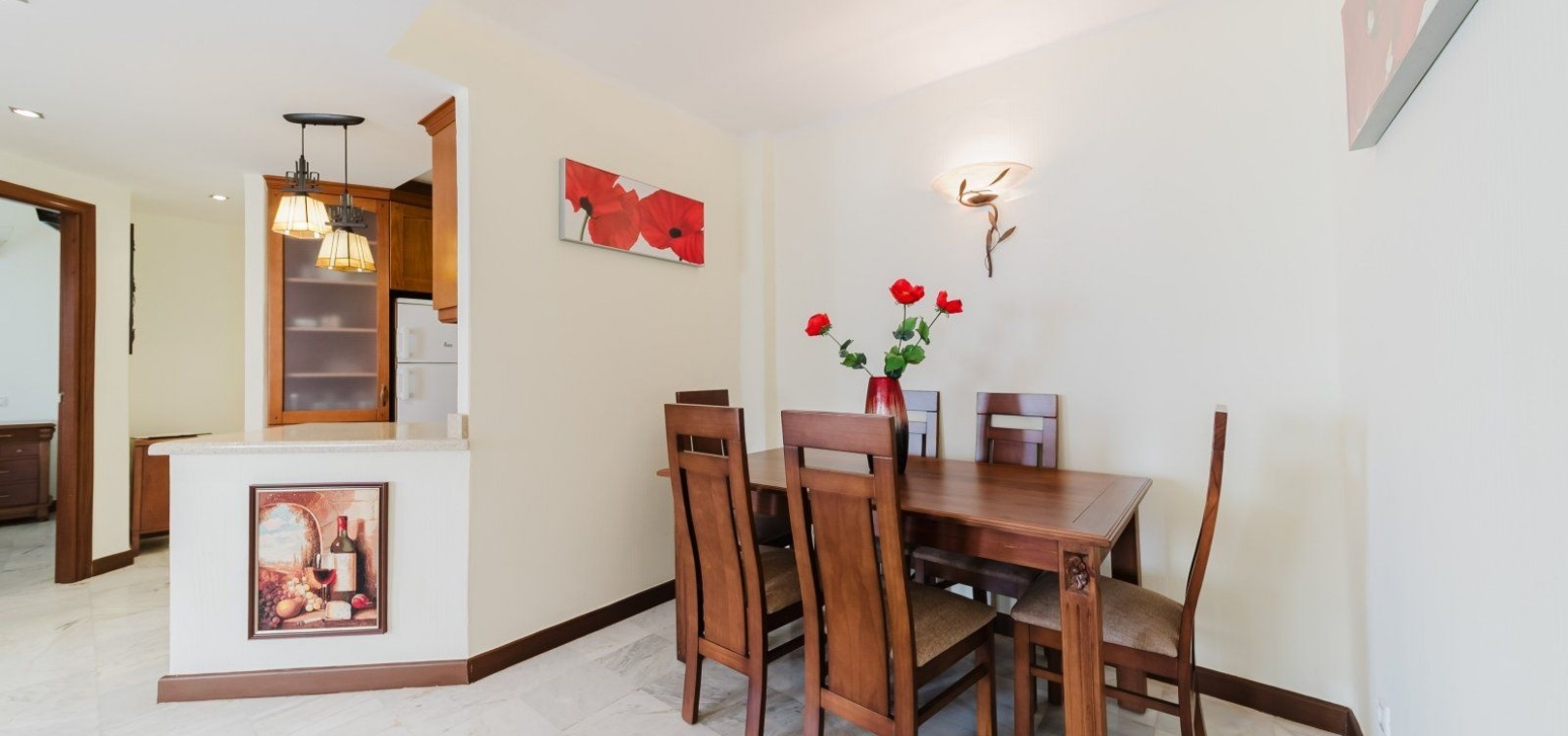 Lägenheten säljs fullt möblerad och utrustad, har luftkonditionering och tillgång till utmärkta gemensamma faciliteter, inklusive en pool. Byggnaden har hiss, 24-timmars bevakning och en välskött miljö.