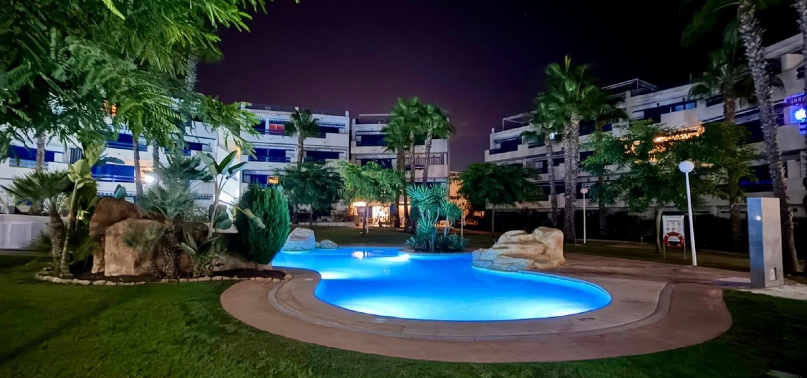 Lägenheten har ett perfekt läge inom gångavstånd från butiker, restauranger och vardagliga bekvämligheter, och ligger även nära stränder och fritidsanläggningar, vilket gör den till ett idealiskt val för både permanent boende och semesterbruk.
