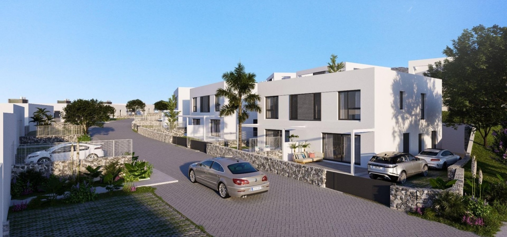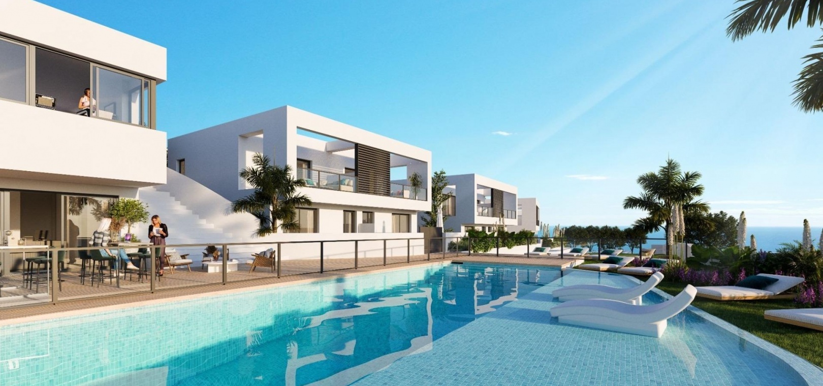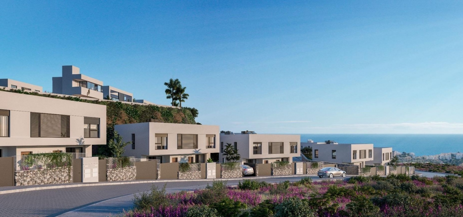 Nybyggt bostadsområde med parhus i Mijas med havsutsikt.