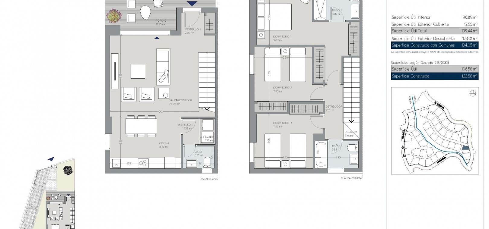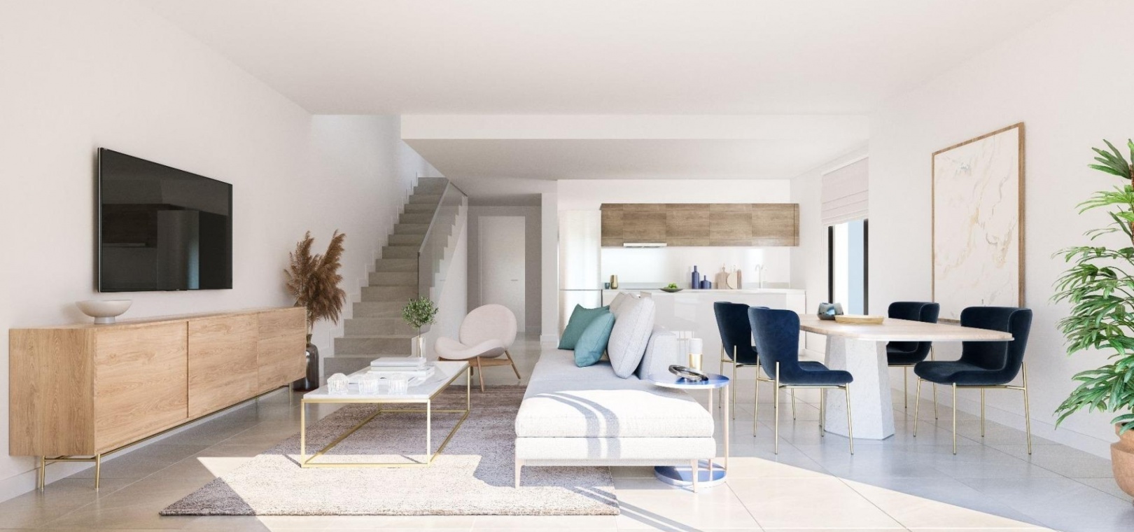 Moderna parhus fördelade på 2 våningar, har 3 sovrum, 2 badrum, kök med öppen planlösning och vardagsrumsdel, tillsammans med en trädgård och möjlighet att lägga till en privat pool.