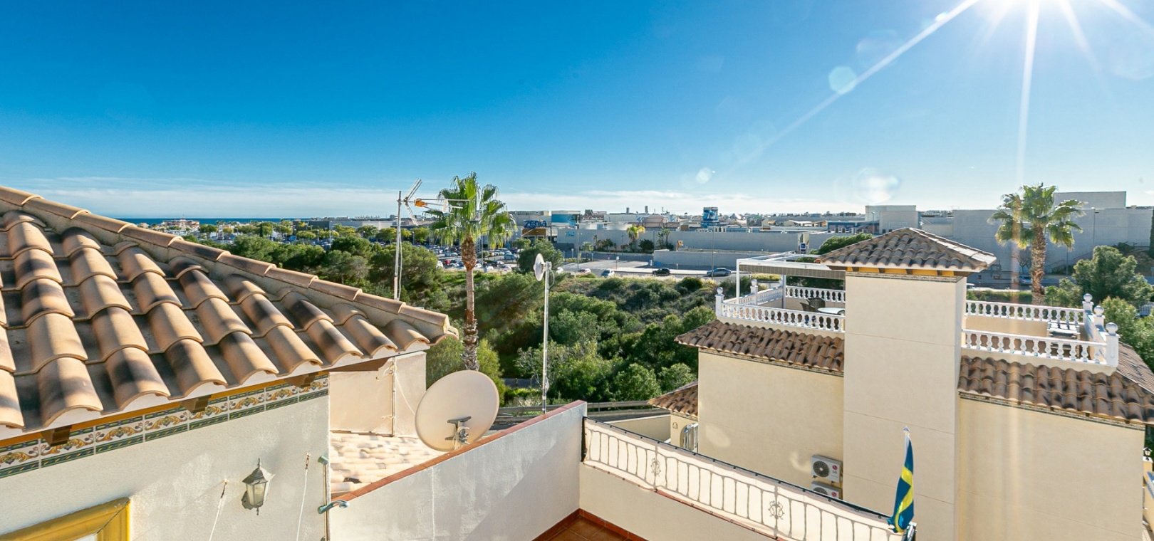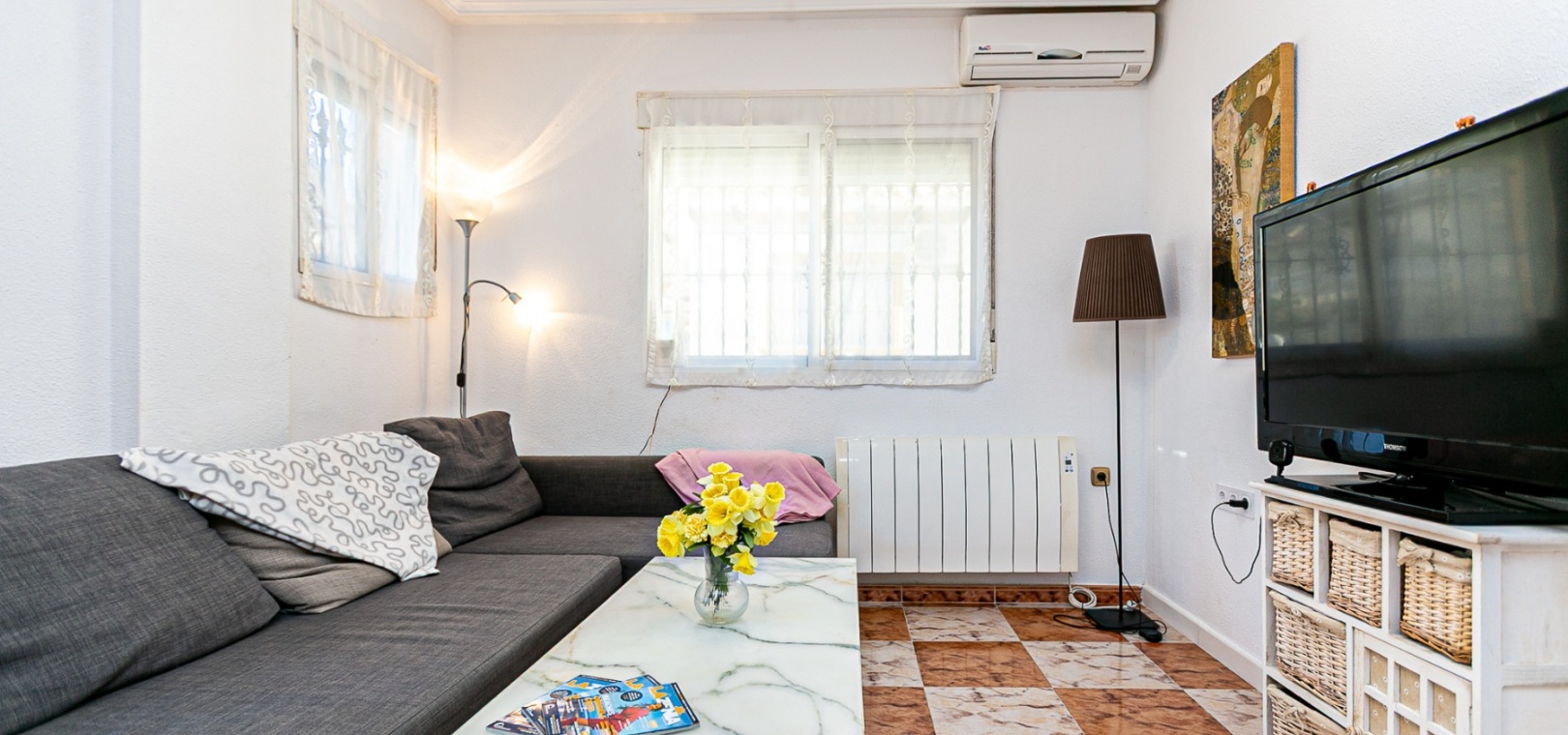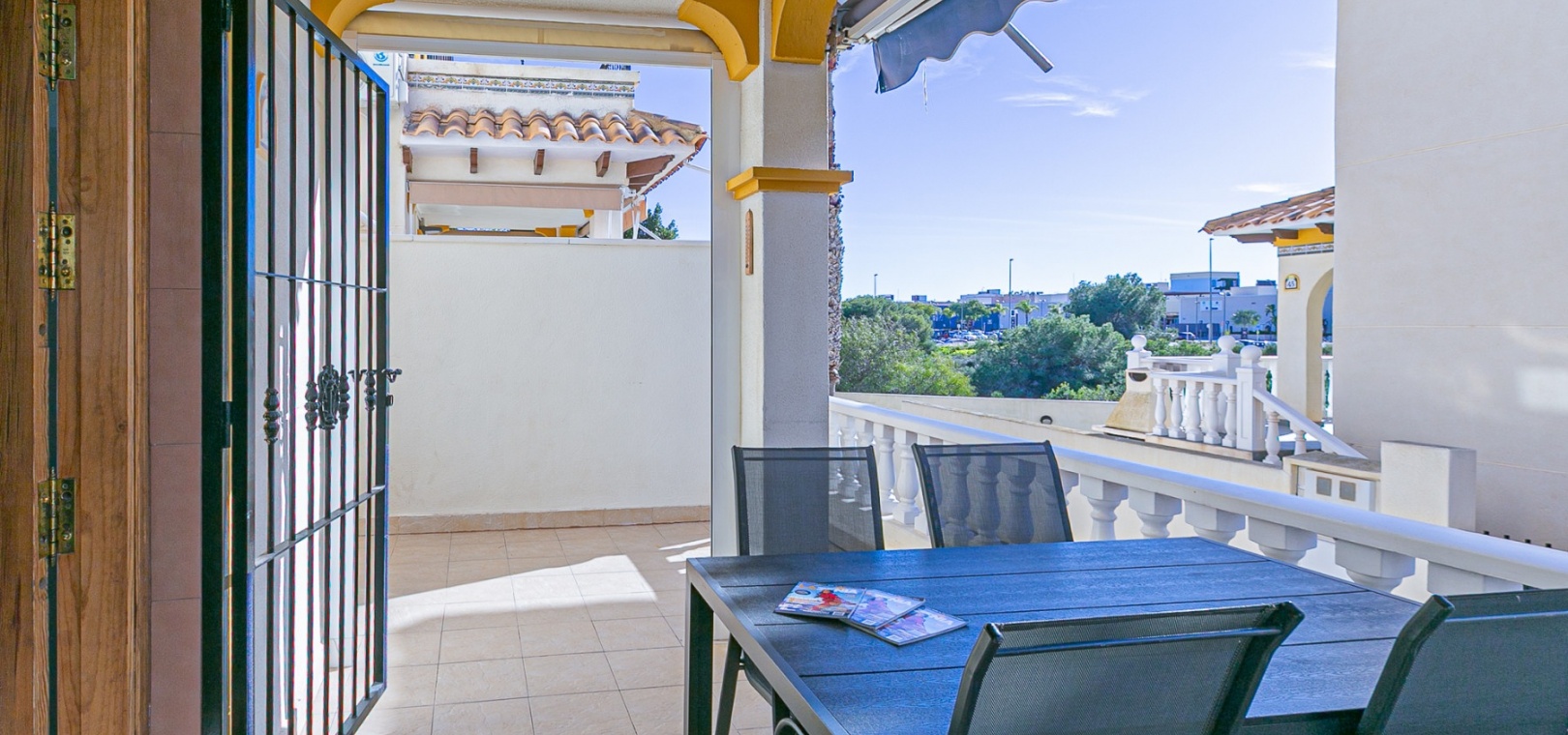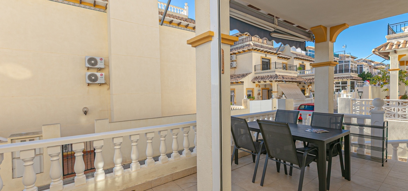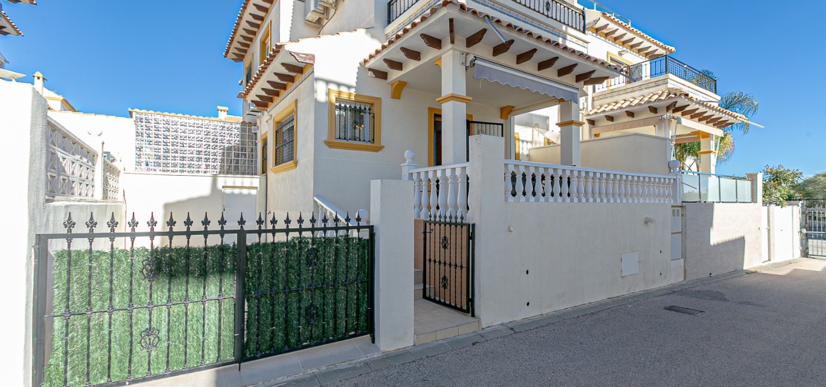 Till salu: Charmigt fyrbäddshus i söderläge beläget mellan La Zenia och Playa Flamenca, i ett gated bostadsområde med gemensam pool.