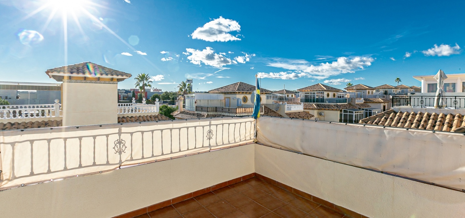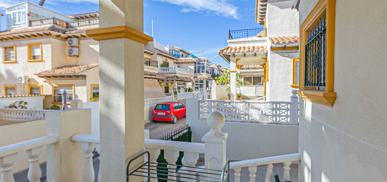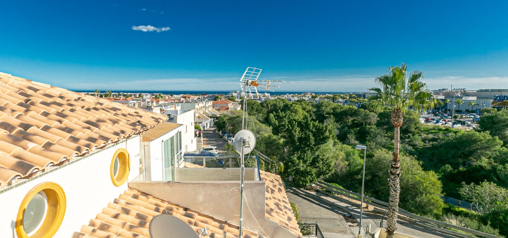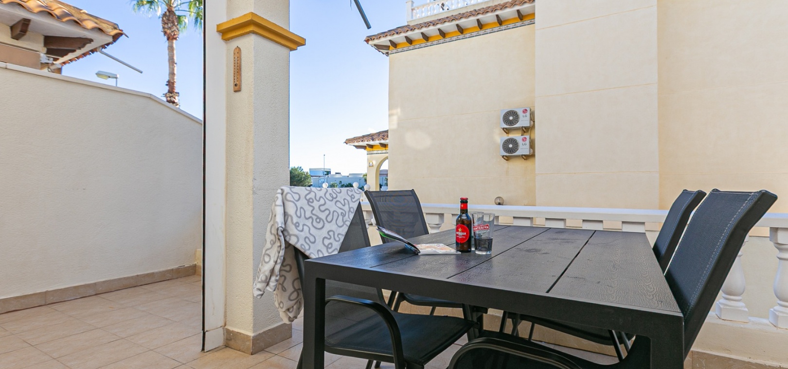 Till salu: Charmigt fyrbäddshus i söderläge beläget mellan La Zenia och Playa Flamenca, i ett gated bostadsområde med gemensam pool.