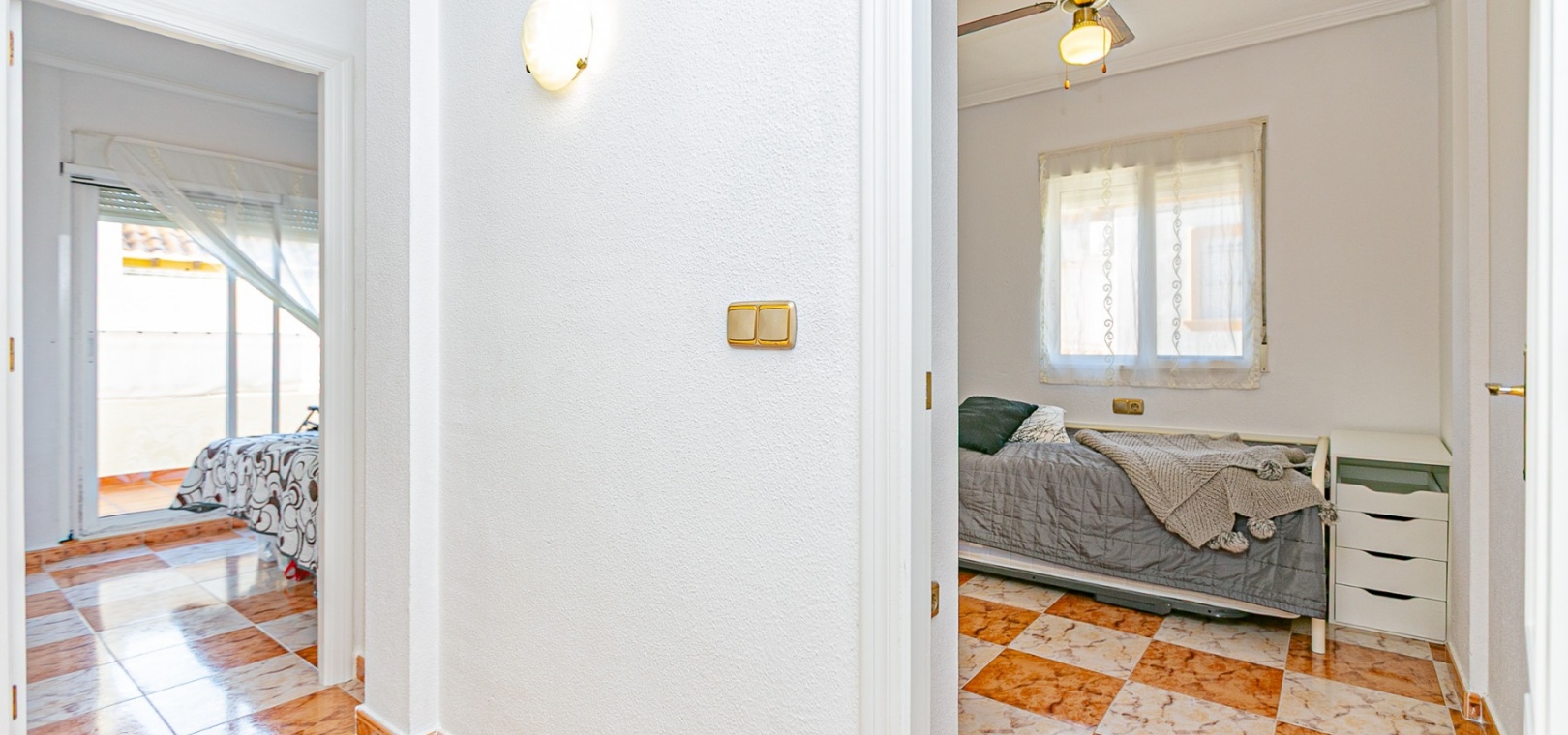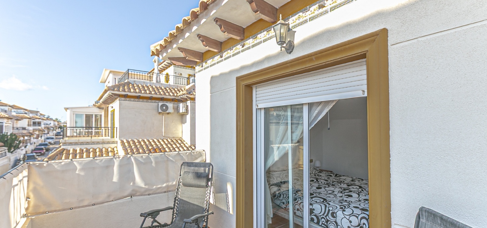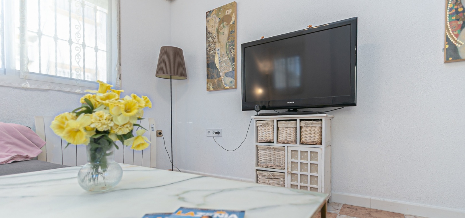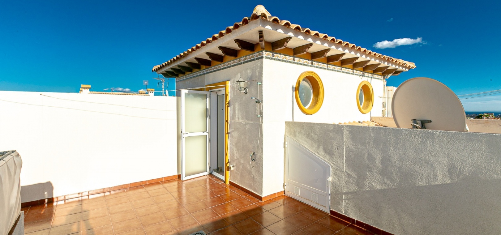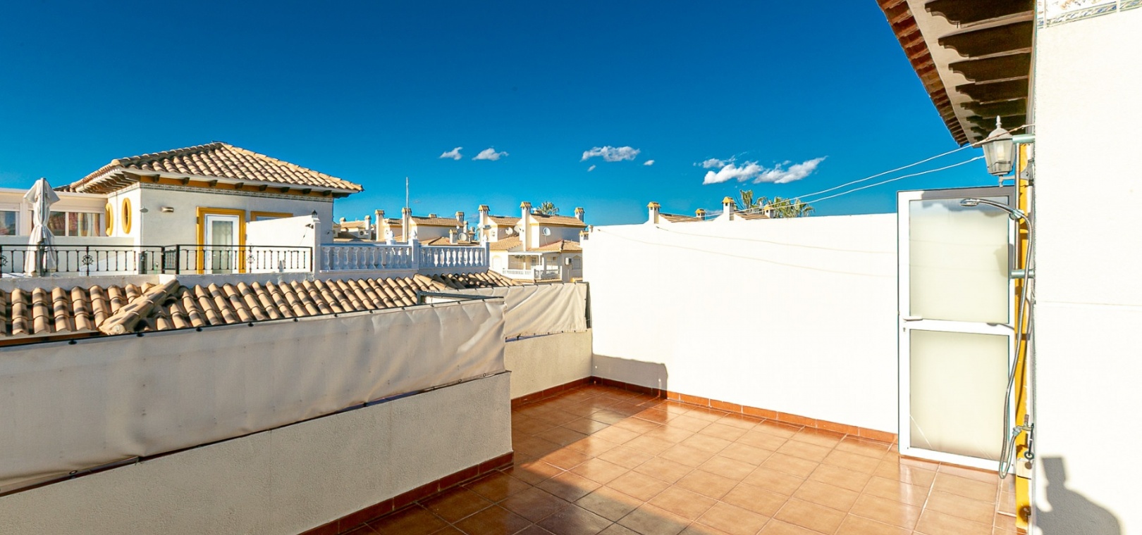 Till salu: Charmigt fyrbäddshus i söderläge beläget mellan La Zenia och Playa Flamenca, i ett gated bostadsområde med gemensam pool.