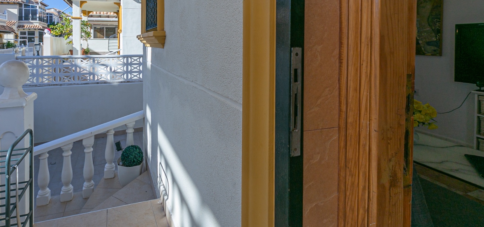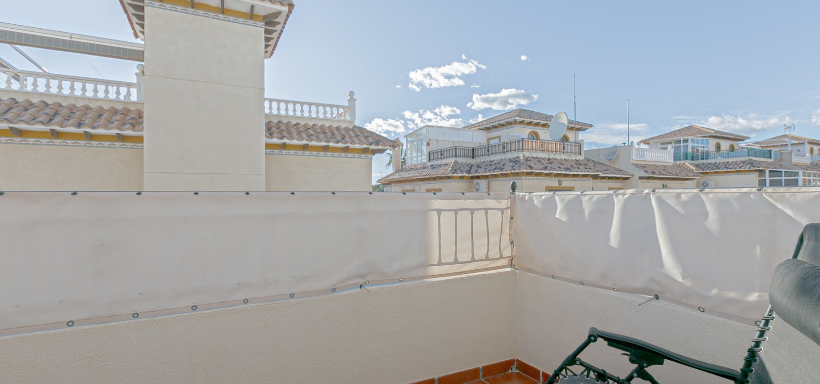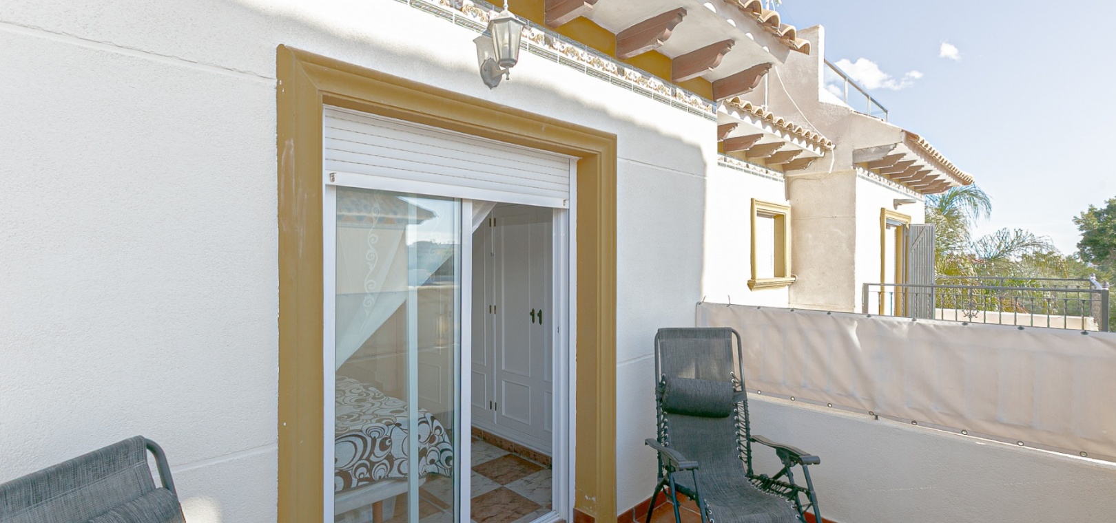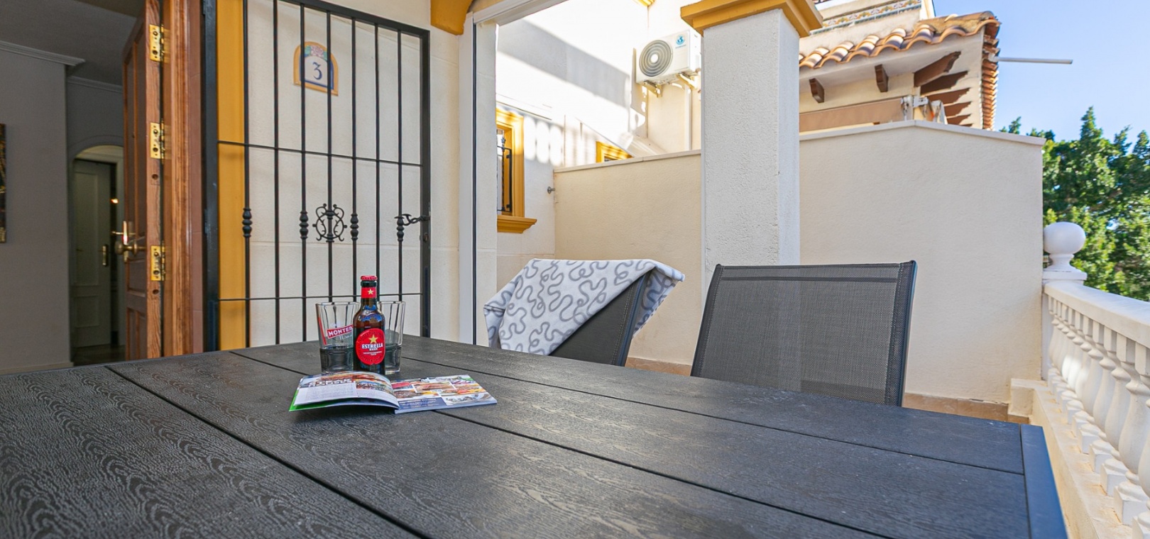 Till salu: Charmigt fyrbäddshus i söderläge beläget mellan La Zenia och Playa Flamenca, i ett gated bostadsområde med gemensam pool.