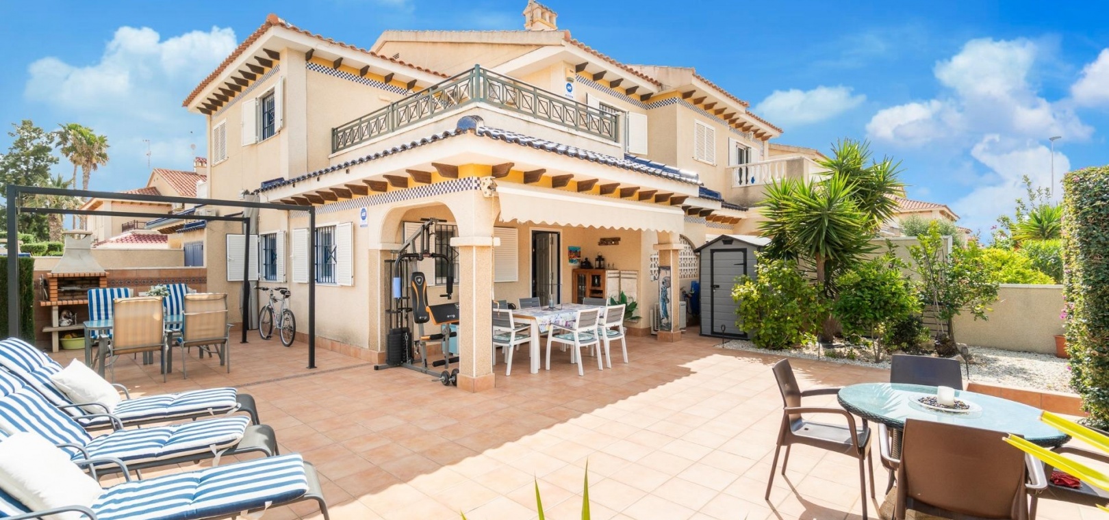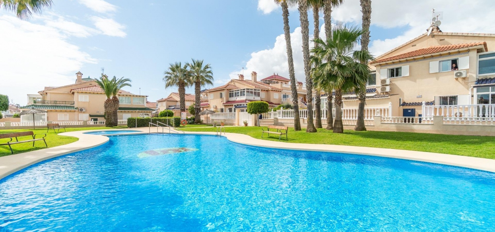 De boende har tillgång till välskötta gemensamma trädgårdar och en stor pool, vilket skapar en trevlig miljö för avkoppling. Fastigheten är också bekvämt belägen nära kollektivtrafik, skolor och en rad lokala bekvämligheter, inklusive den närliggande La Zenia Boulevard .