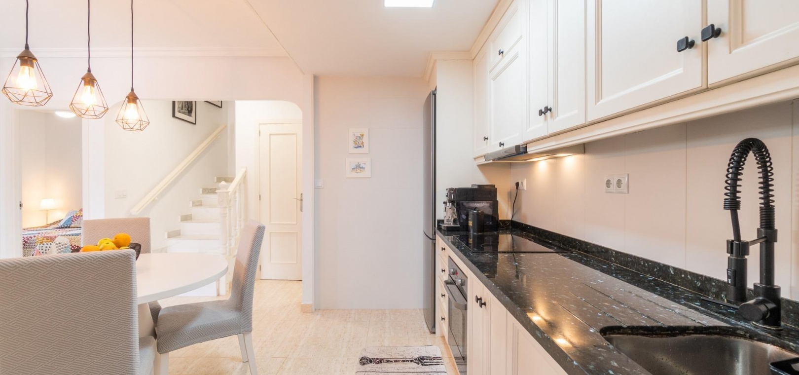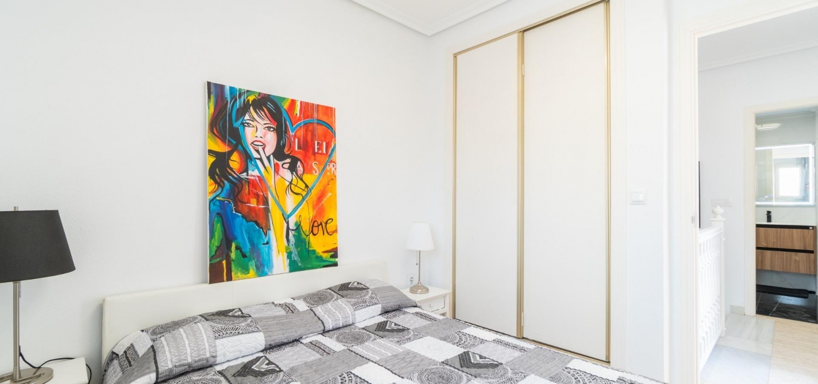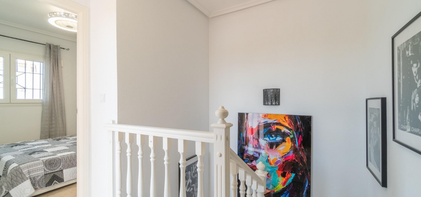 På första våningen finns ytterligare två sovrum, ett andra renoverat badrum och tillgång till en privat terrass.