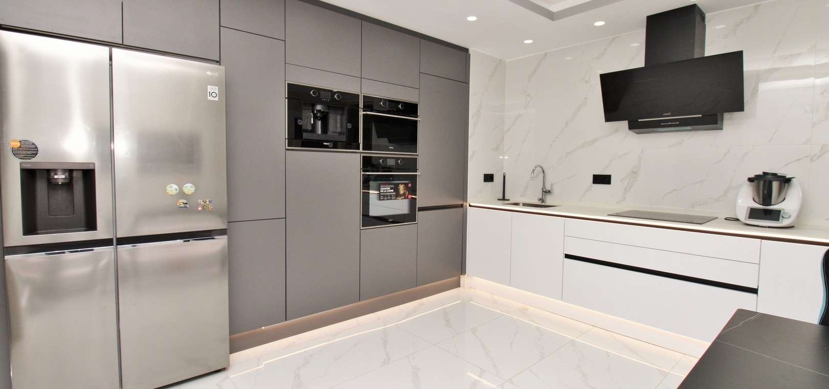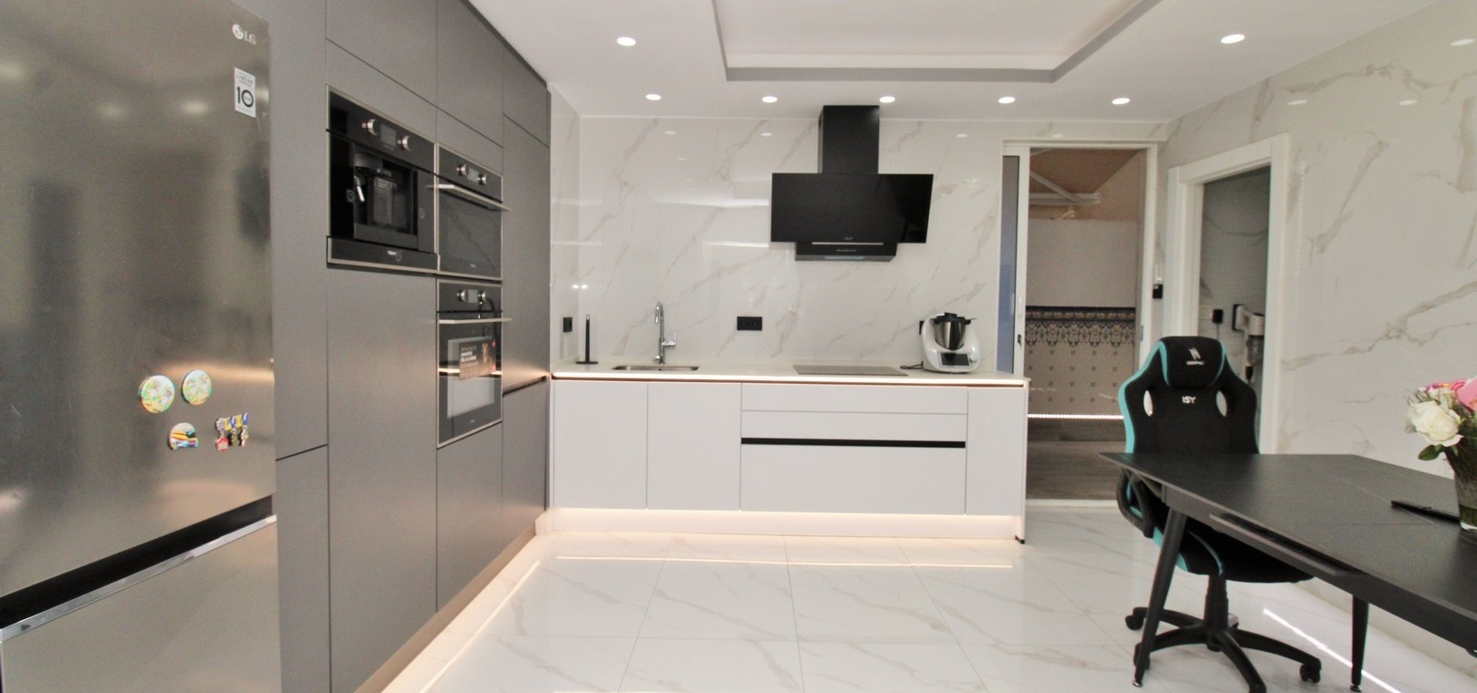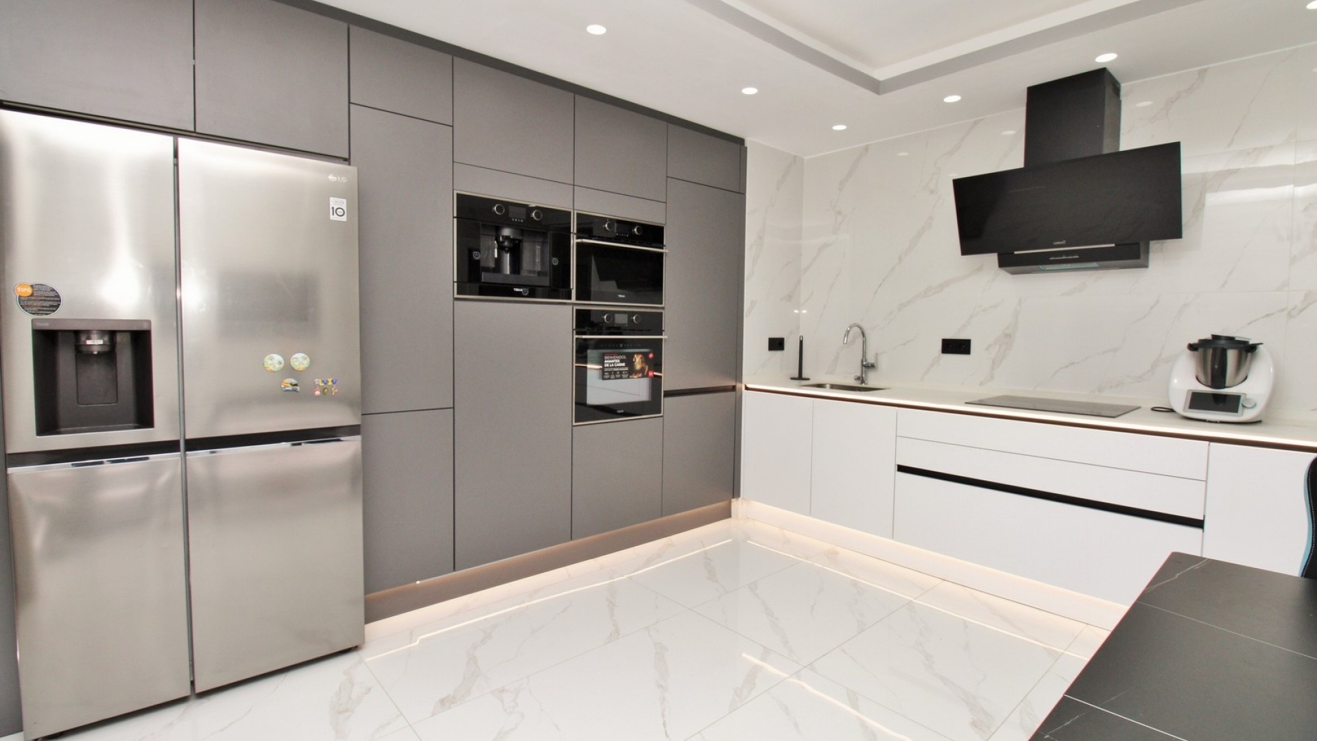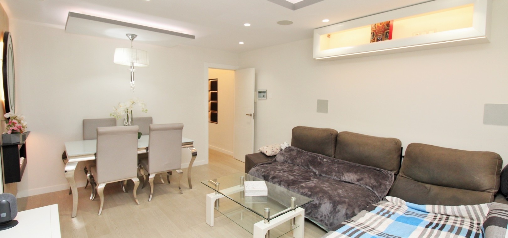 Fastigheten har totalrenoverats till en hög standard, inklusive ett helt nytt kök, uppdaterade badrum, nytt golv, nya innerdörrar, inbyggda garderober och modern kakelläggning i hela huset. Ett smart hem-system har också installerats, vilket möjliggör bekväm styrning av LED-belysning för en modern och effektiv livsstil.