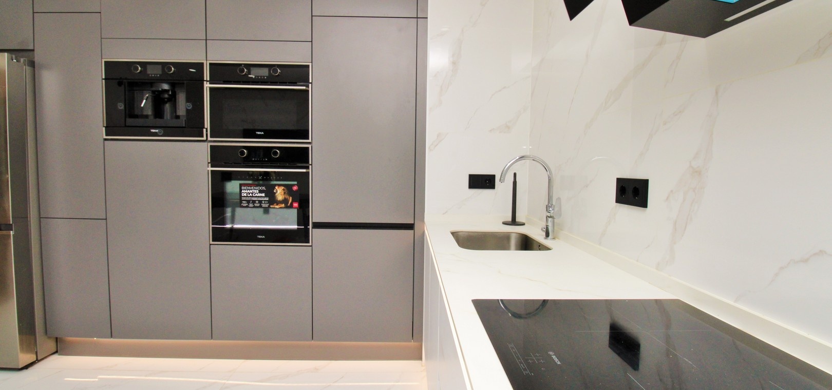 Lägenheten välkomnar dig med en rymlig entréhall som leder in i ett ljust och bekvämt vardagsrum med matplats, perfekt för avkoppling eller umgänge. Det stora separata köket är fullt utrustat med inbyggda vitvaror och erbjuder utmärkt förvaring och arbetsyta, kompletterat av ett angränsande tvättstuga och tillgång till en privat terrass – perfekt för morgonkaffet eller extra utomhusutrymme.