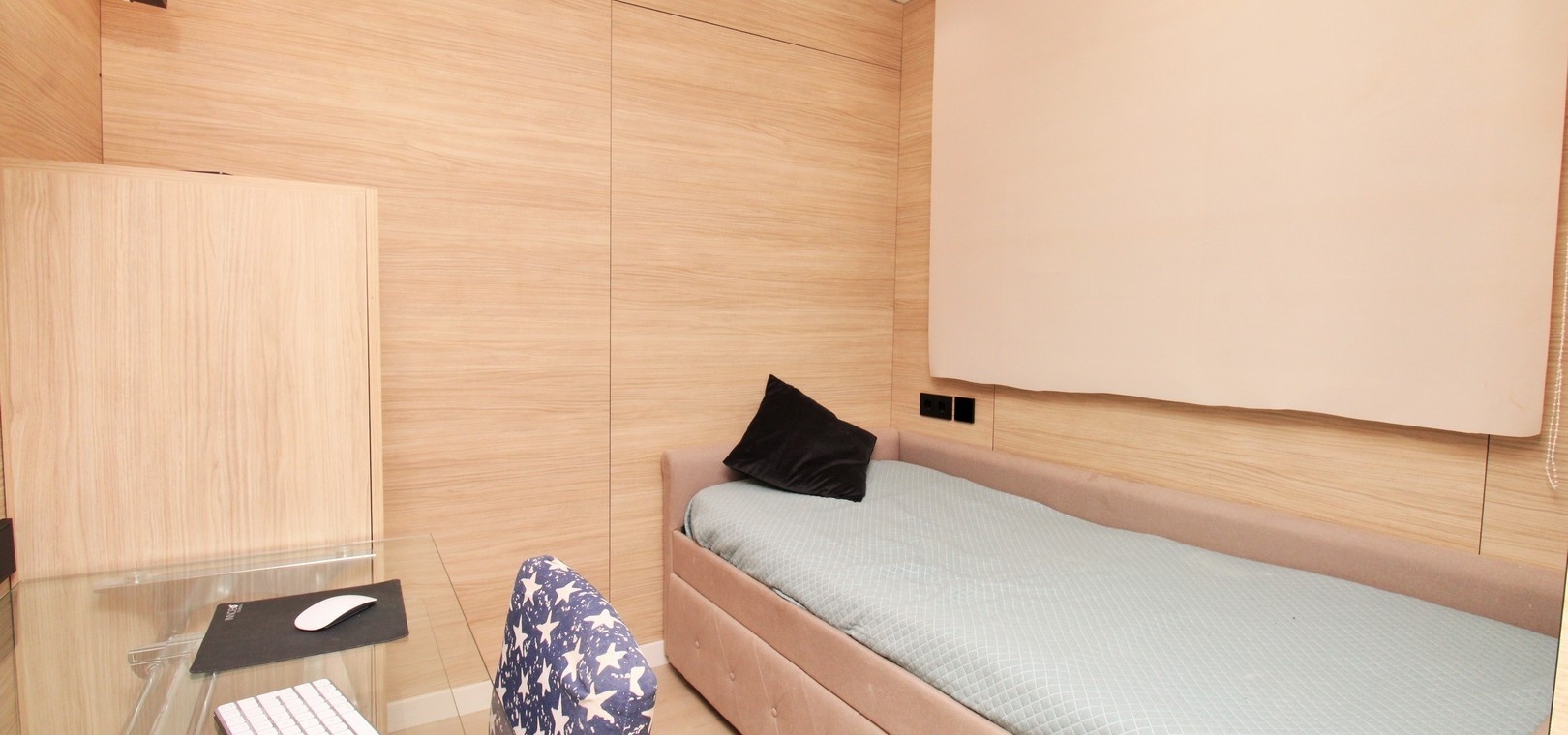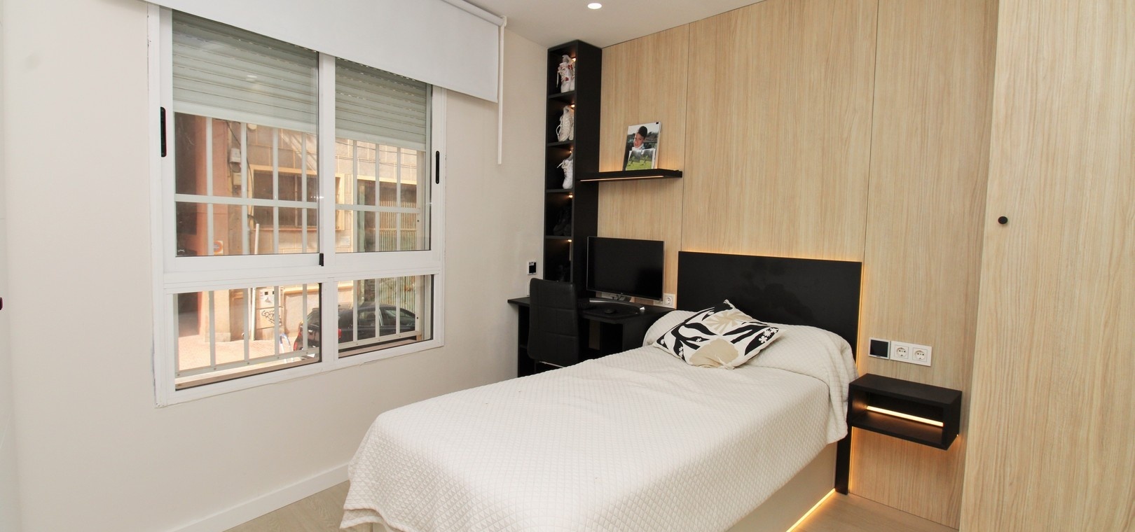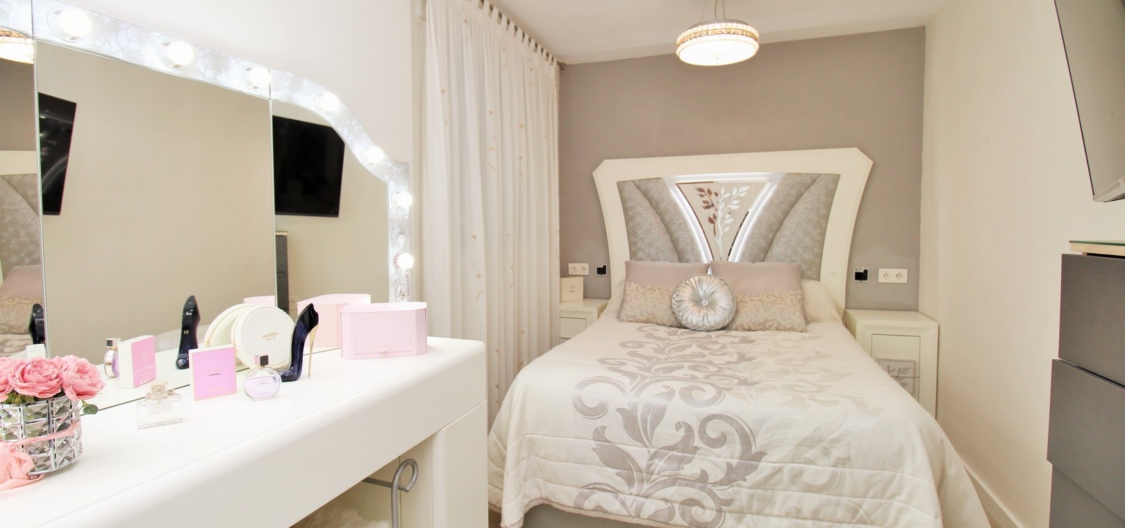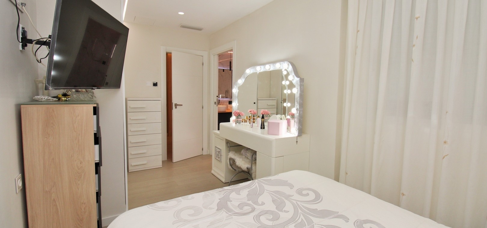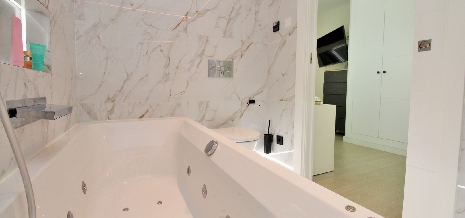 Det finns tre välproportionerade sovrum, alla med inbyggda garderober, och två eleganta badrum. Familjebadrummet har en modern duschkabin, medan master-sviten har ett eget badrum med jacuzzi, vilket ger en touch av lyx.