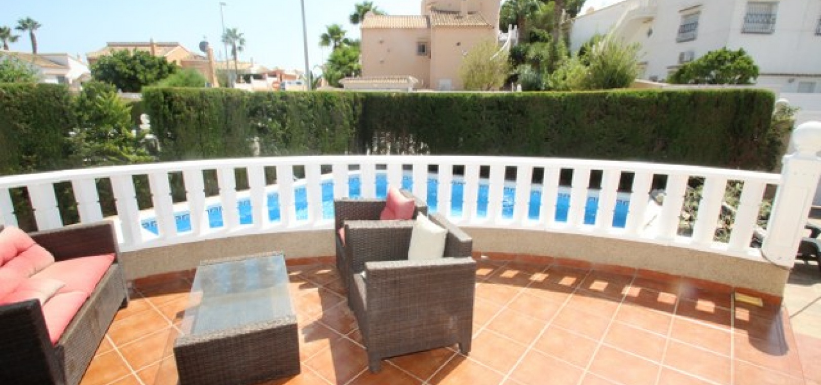 Denna fastighet har ett lugnt läge men det är bara 5 minuters promenad till lokala barer och restauranger och cirka 10 minuters promenad till den berömda Villamartin Plaza & Golf Course där du hittar många barer, butiker, restauranger, banker, snabbköp etc. Det är 5 minuters bilresa till stranden La Zenia och det enorma köpcentret Zenia Boulevard. 35 minuters bilresa till Murcia Corvera flygplats och cirka 45 minuters bilresa till Alicantes flygplats. Denna fastighet har ett idealiskt, centralt läge för golf med golfbanorna Villamartin, Campoamor och Las Ramblas i närheten.