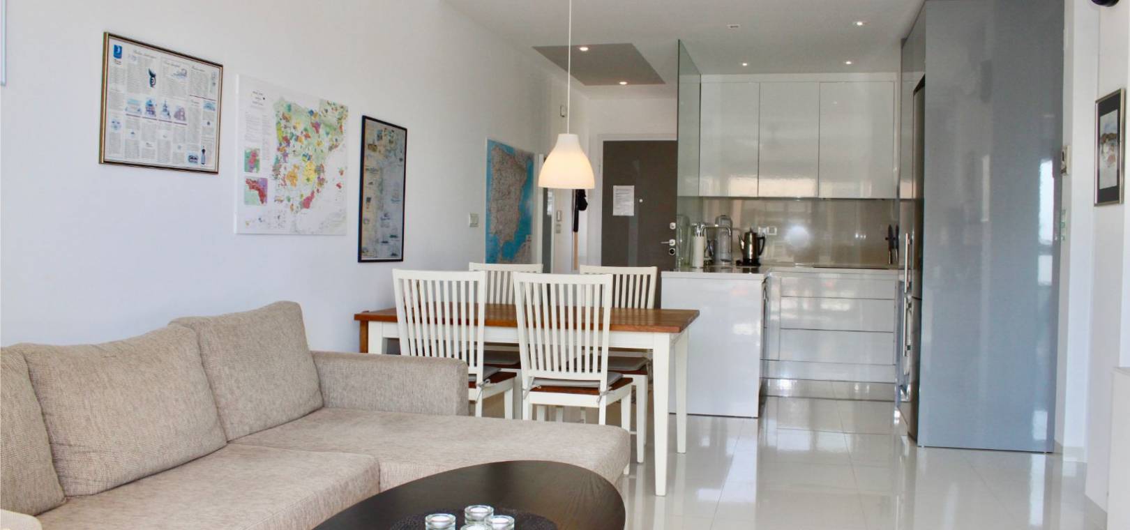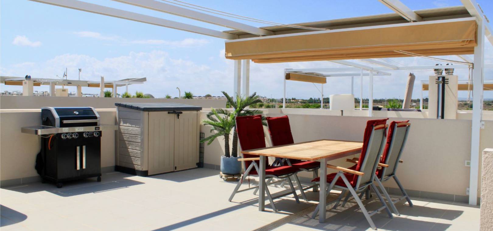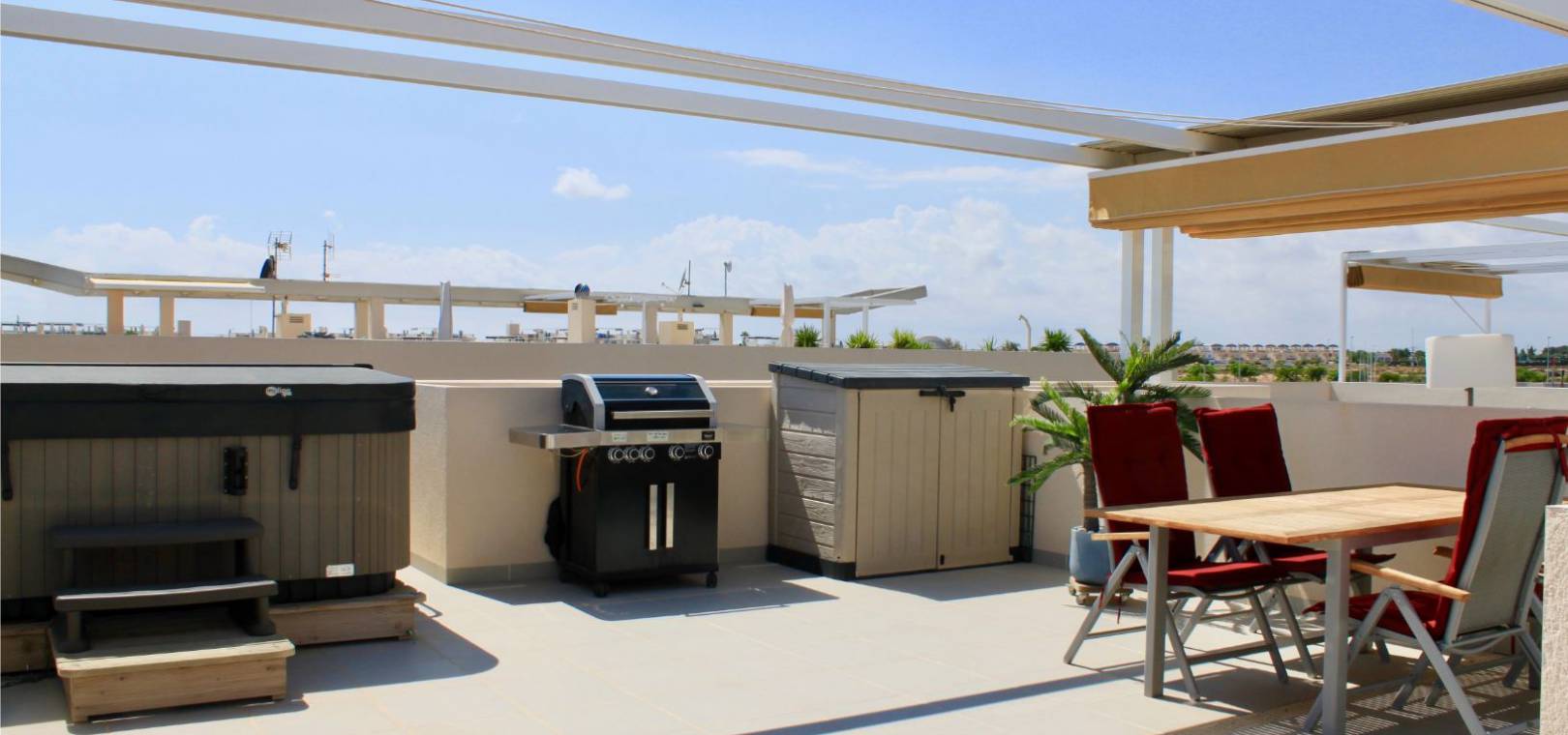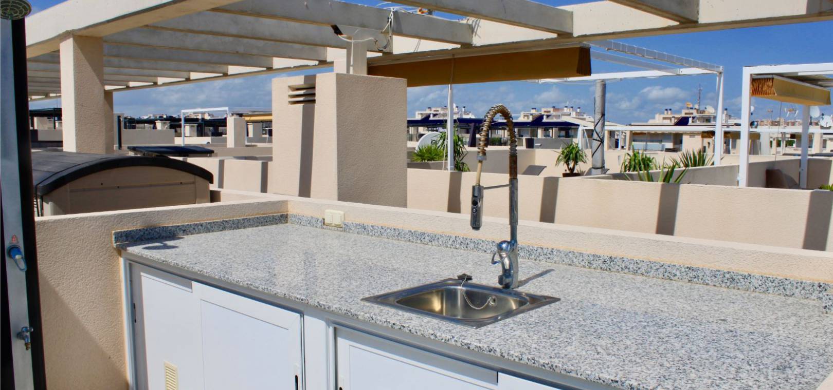 En lägenhet i söderläge med 2 sovrum och 2 badrum på översta våningen med ett privat solarium på taket i Playa Elisa Bay II, Mil Palmeras, Costa Blanca. Denna underbara fastighet erbjuds till salu i utmärkt skick och består mycket kort av följande: - Ljus och luftig solstol / matsal, fullt utrustat kök med öppen planlösning, 2 x dubbelrum med inbyggda garderober, master med eget duschrum, 1 x familj duschrum, balkong, stort privat takterrass, gemensam pool, barnpark, gemensam parkering och mycket mer. Fastigheten ligger bara några minuters promenad till stranden och lokala barer, butiker och restauranger. Den här fastigheten ligger bara 30 minuters bilresa från Corvera flygplats och 50 minuters bilresa från Alicantes flygplats.