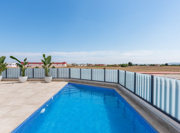 Nybyggt 3 sovrum 2,5 badrum modern stil parhus med privat pool ligger i Residencial Paris VI i utkanten av den vackra spanska staden Dolores, Costa Blanca.