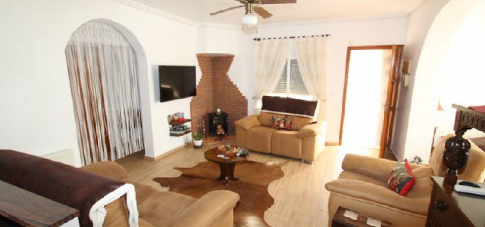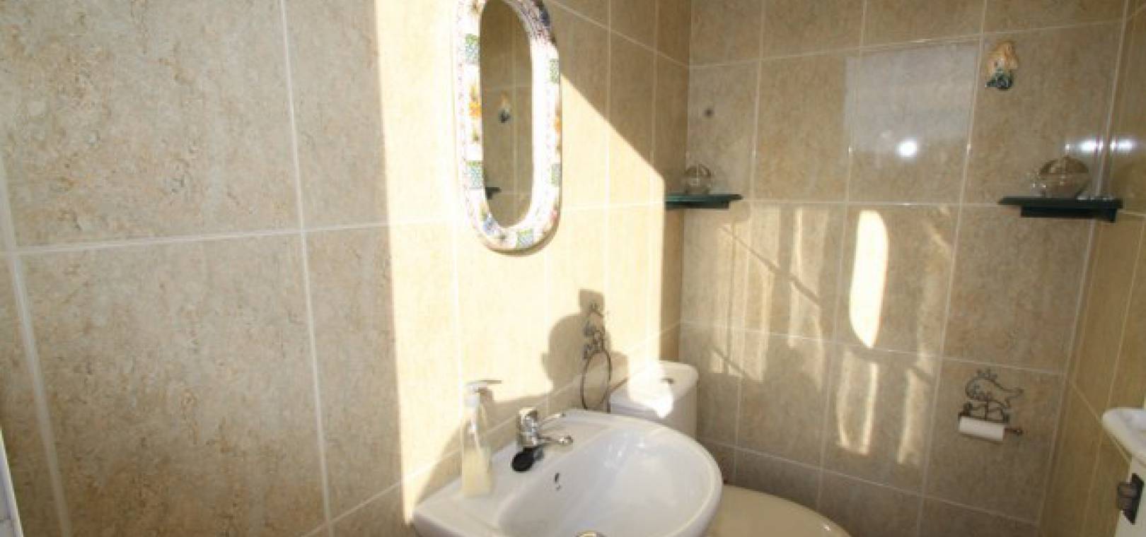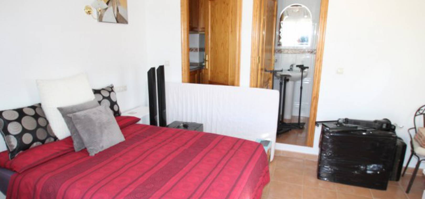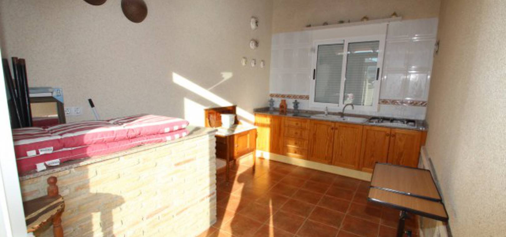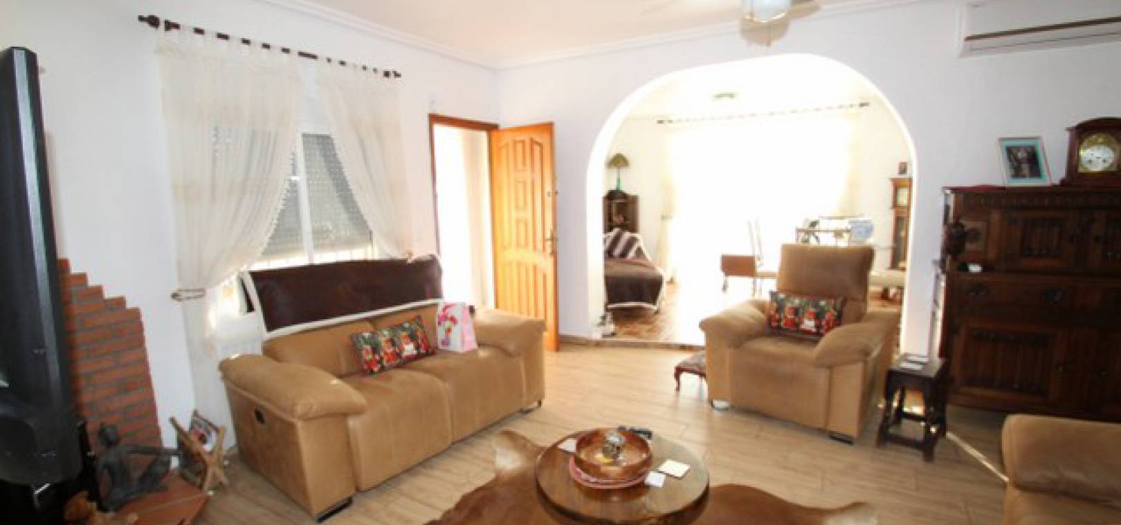 En villa med 3 sovrum och 3 badrum i spansk stil med en privat pool på en 800m2 tomt i Eagles Nest, Villamartin, Costa Blanca. Denna härliga fastighet säljs i gott skick och består mycket kort av följande:- Stort vardagsrum/matrum med varm och kall A/C, eldstad och takfläkt, öppet kök, 2 x dubbelrum båda med promenad -in garderober och badrum och ett stort renoverat familjebadrum. På solariet finns en liten fristående lägenhet med vardagsrum/sovrum, kök och badrum. Utanför finns en 800m tomt med privat pool, pergola, utekök och bar, W/CA och grovkök och mycket mer. Barer, butiker och restauranger ligger bara några minuters promenad bort. Den berömda Villamartin Plaza & golfbanan ligger mindre än 15 minuters promenad bort. Det är mindre än 10 minuters bilresa till de underbara Orihuela Costa Blue flag -stränderna (eller du kan använda lokalbuss) och det finns ytterligare 3 golfbanor inom 5 minuter kör. Alicante flygplats ligger 50 minuters bilresa bort.