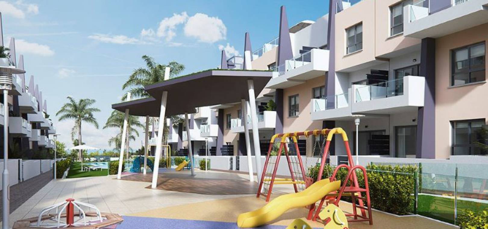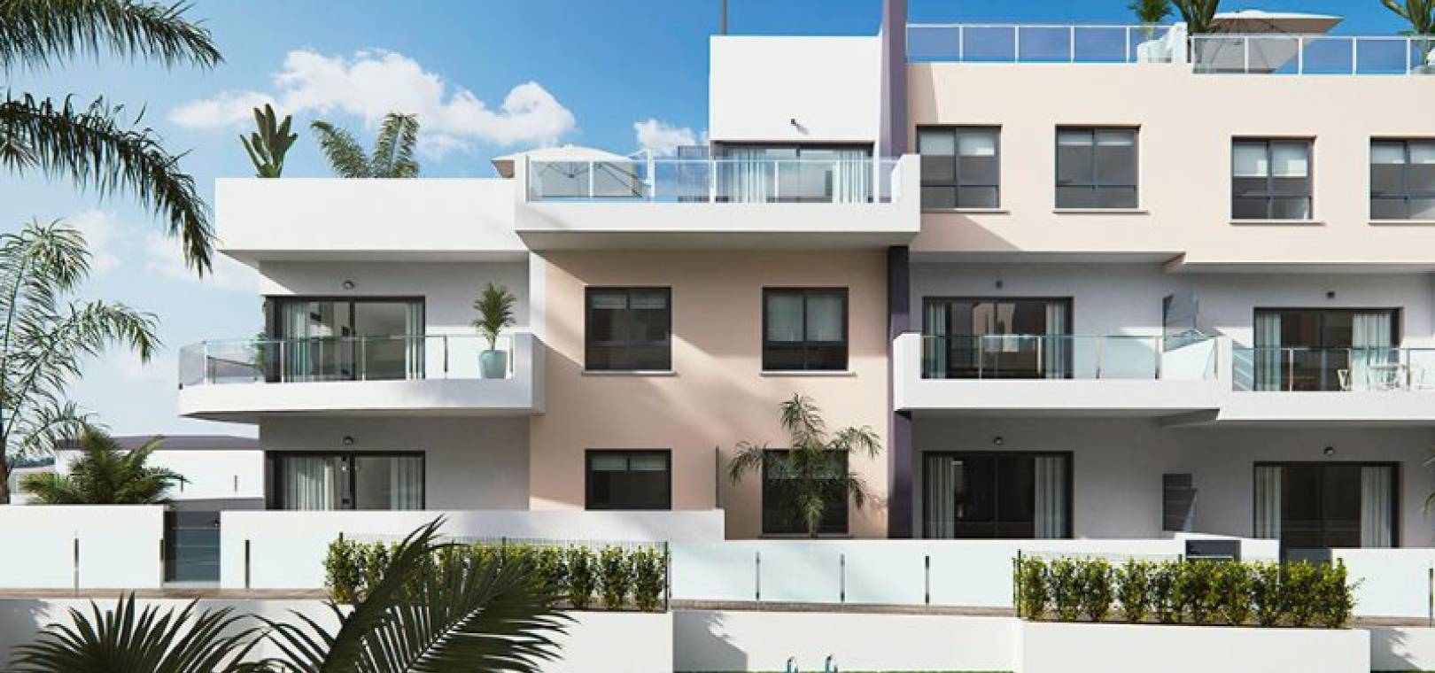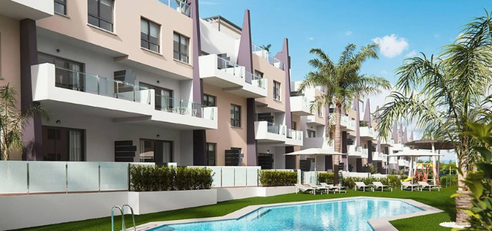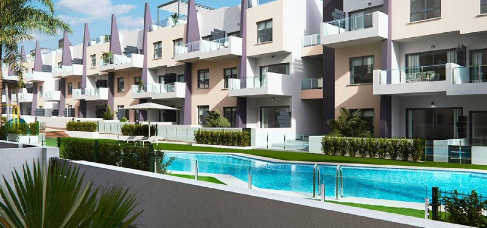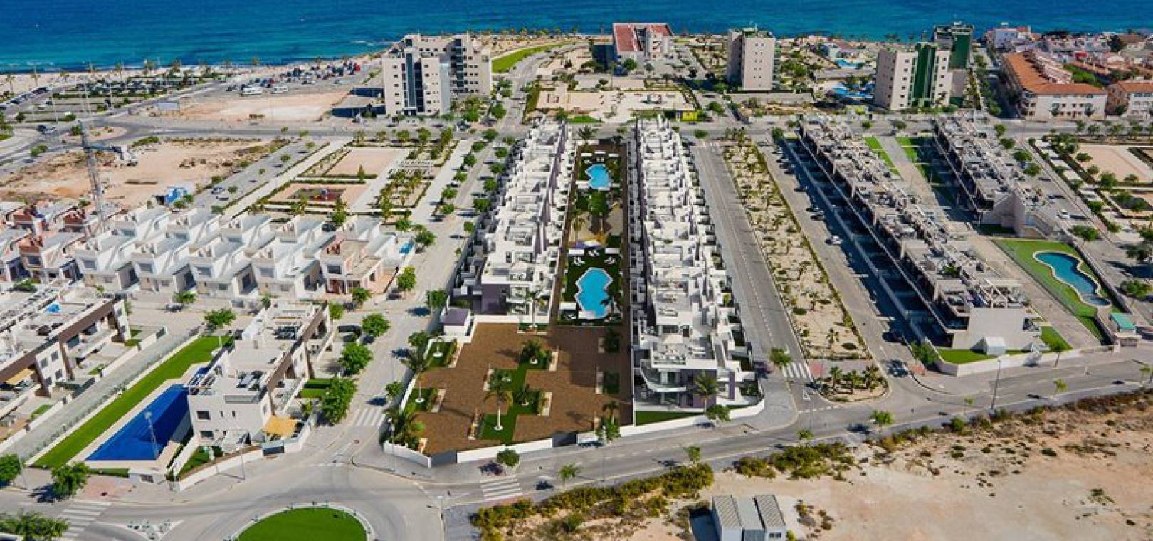 Key Ready ultramoderna 2 sovrum och 2 badrumslägenheter belägna i Res. Bianca Beach, Mil Palmeras, Costa Blanca. Dessa underbara fastigheter ligger bara några minuters promenad från stranden och består mycket kort av följande: - Res. Bianca Beach består av totalt 104 lägenheter. Inbyggda kvarter med 3 nivåer och varje kvarter har en hiss. Ljus och luftig solstol / matsal, kök i amerikansk stil med spishäll och fläkt, 2 x dubbelrum med inbyggda garderober, master med eget duschrum, 1 x familjeduschrum, täckt terrass, trädgård (endast bottenvåningen lägenheter) med en uppfart för off-road parkering, stort privat solarium (endast lägenheter på översta våningen), härlig gemensam pool och trädgårdar, barnpark och mycket mer. Dessa fastigheter ligger bara några minuters promenad till stranden och lokala barer, butiker och restauranger. Den här fastigheten ligger bara 30 minuters bilresa från Corvera flygplats och 50 minuters bilresa från Alicantes flygplats.