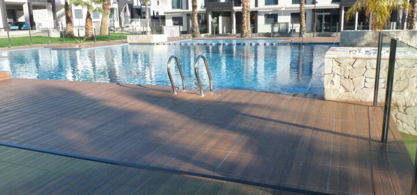 En lägenhet med 2 sovrum och 2 badrum på bottenvåningen med utsikt över den gemensamma poolen som ligger i Oasis Beach, La Zenia, Costa Blanca. Denna härliga moderna fastighet säljs i mycket gott skick, möblerad och består mycket kort av följande:- Stort vardagsrum / matrum, fullt utrustat kök i öppen planlösning, 2 x dubbelrum båda med inbyggda garderober, master med eget duschrum & varm och kall A/C, 1 x familjeduschrum, terrass, trädgård, ultramodern design, högklassiga byggmaterial och mycket mer. Denna underbara fastighet ligger bara några minuters promenad till lokala barer, restauranger, stormarknader etc, mindre än 5 minuters promenad till köpcentret Zenia Boulevard och mindre än 15 minuters promenad till stranden och Alicante flygplats ligger 50 minuters bilresa.