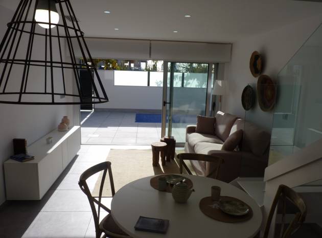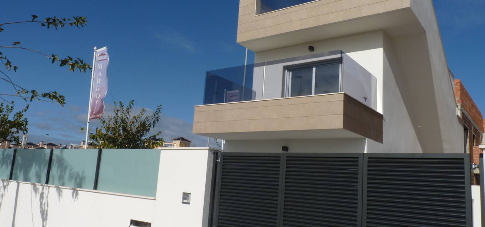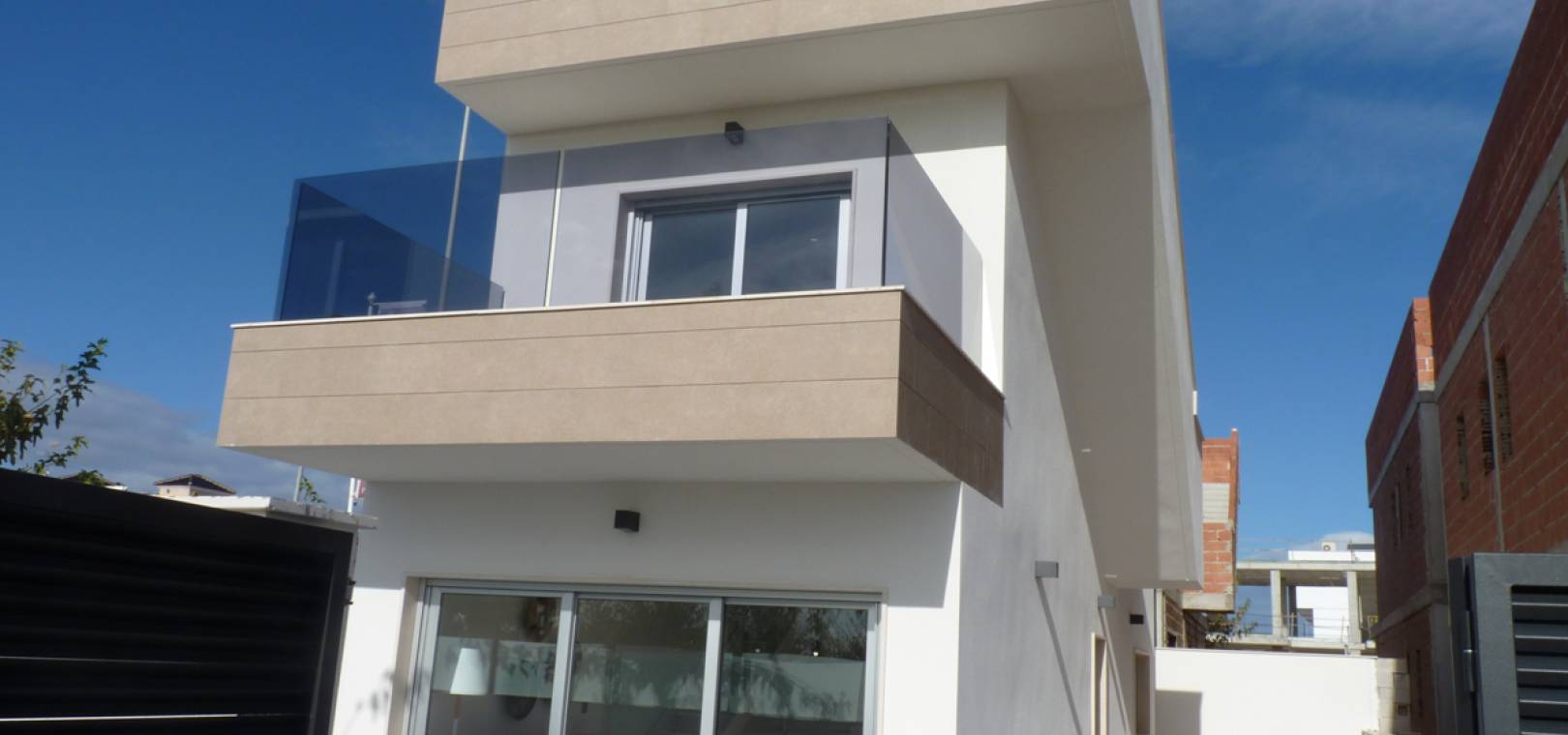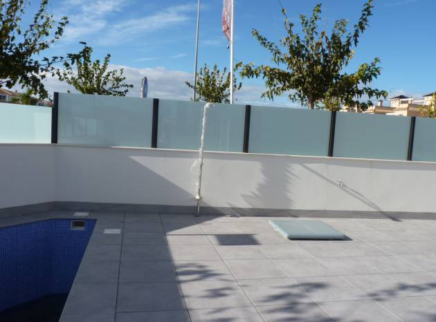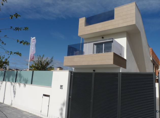 Key Ready Ultra Modern Design 3 sovrum, 3 badrum fristående villor ligger bara 600 meter från stranden i Res. Villor Torre Margove, Torre de la Horadada, Costa Blanca. Dessa fantastiska villor är färdiga till en mycket hög standard och använder kvalitets energibesparande material och högkvalitativa inventarier och inredning. Dessa villor består mycket kort av följande: - Vardagsrum / matrum, fullt utrustat kök med öppen planlösning, 3 x dubbelrum, 3 x badrum, 53m2 privat solarium med havsutsikt, terrass, privat trädgård med en uppfart för off-road parkering och privat simbassäng. Helt fantastisk! Högkvalitativa beslag inifrån och ut. Priser från 281 000 euro. Dessa fastigheter ligger bara 600 meter från stranden och inom gångavstånd till barer, butiker, restauranger etc. Den nya Murcia Corvera flygplats 30 minuters bilresa bort & Alicante flygplats är cirka 55 minuters bilresa.