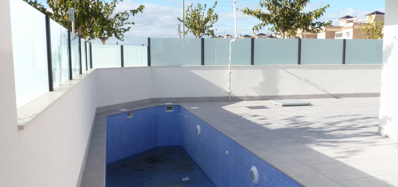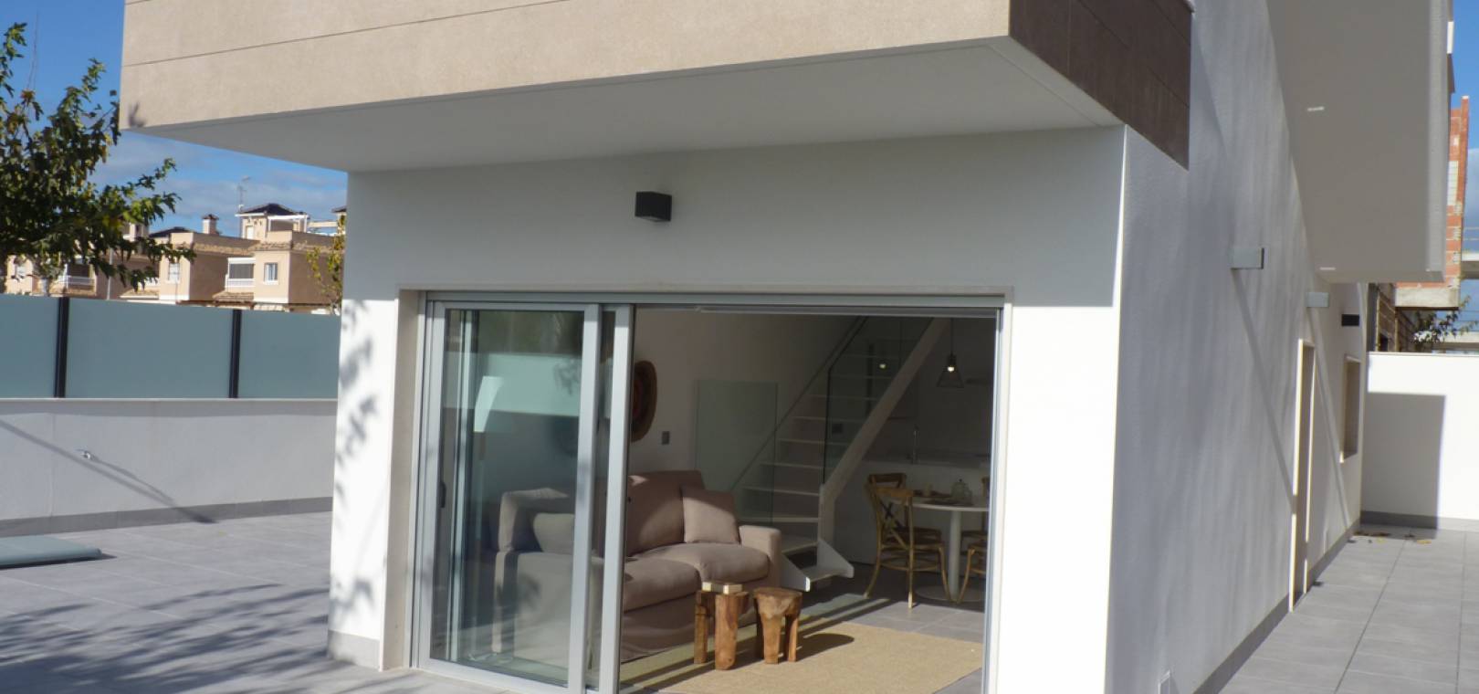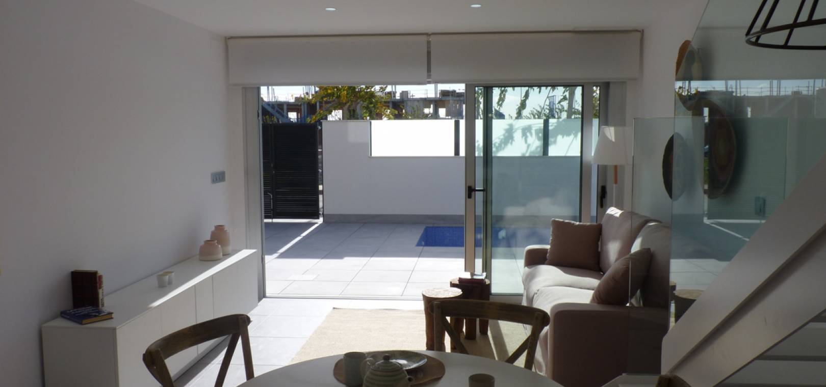 Key Ready Ultra Modern Design 3 sovrum, 3 badrum fristående villor ligger bara 600 meter från stranden i Res. Villor Torre Margove, Torre de la Horadada, Costa Blanca. Dessa fantastiska villor är färdiga till en mycket hög standard och använder kvalitets energibesparande material och högkvalitativa inventarier och inredning. Dessa villor består mycket kort av följande: - Vardagsrum / matrum, fullt utrustat kök med öppen planlösning, 3 x dubbelrum, 3 x badrum, 53m2 privat solarium med havsutsikt, terrass, privat trädgård med en uppfart för off-road parkering och privat simbassäng. Helt fantastisk! Högkvalitativa beslag inifrån och ut. Priser från 281 000 euro. Dessa fastigheter ligger bara 600 meter från stranden och inom gångavstånd till barer, butiker, restauranger etc. Den nya Murcia Corvera flygplats 30 minuters bilresa bort & Alicante flygplats är cirka 55 minuters bilresa.