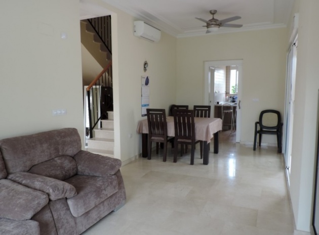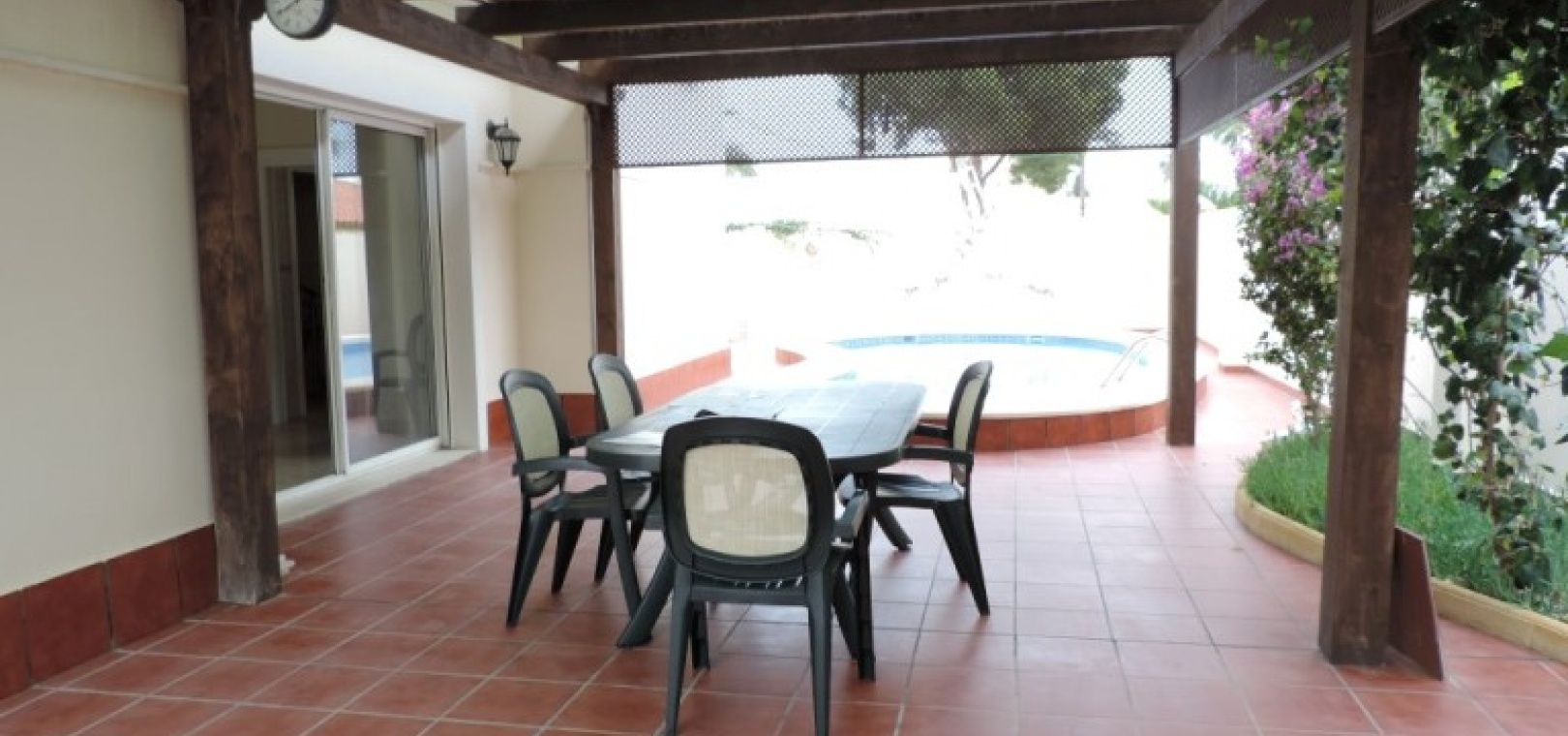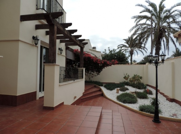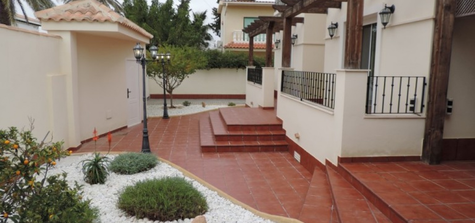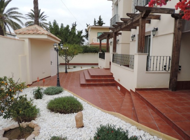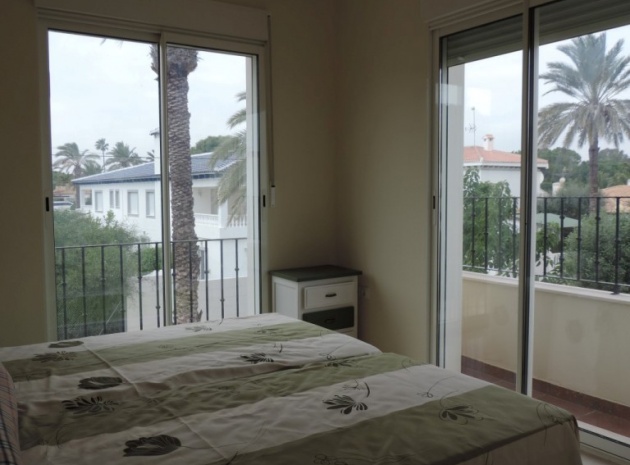 Denna fantastiska, fristående villa med sex sovrum i Cabo Roig, vid stranden av N-332, ligger på en av de mest eftertraktade platserna på Orihuela Costa, på grund av dess närhet till stranden, havet, hamnen, omgivande bekvämligheter och faciliteter ... mindre än 4 minuters promenad hittar du de vackra stränderna i Cabo Roig, och på bara 5 minuters bilresa finns ledande stormarknader inom området, inte att förglömma ett brett utbud av golfbanor inom en radie på 10 km. Denna fastighet på över 184m2 består av vackra välvda tak och entréhall med trappa; separat fullt utrustat kök, med ett angränsande grovkök; vardagsrum/matsal med tillgång ut till en av de främre terrasserna; sex dubbelrum, varav 4 leder ut till privata terrasser, och 2 av dessa har eget badrum; ytterligare två familjebadrum; och intern tillgång till det soldränkta solariumet på taket. Solariet som ligger på andra våningen är mycket högt och privat, perfekt för grillfester, fester på sommarkvällen eller bara njuta av utsikten över det omgivande området! Utanför finns en vackert anlagd och välskött trädgård, huvudsakligen kaklad med vissa grusade ytor, en bilhamn med 3 platser, massor av växter och träd, gott om matsal och solbadrum och naturligtvis en härlig njurformad privat pool... Denna fastighet innehåller många olika extrafunktioner, men platsen är den stora säljaren för denna 2010 byggda villa!!!
