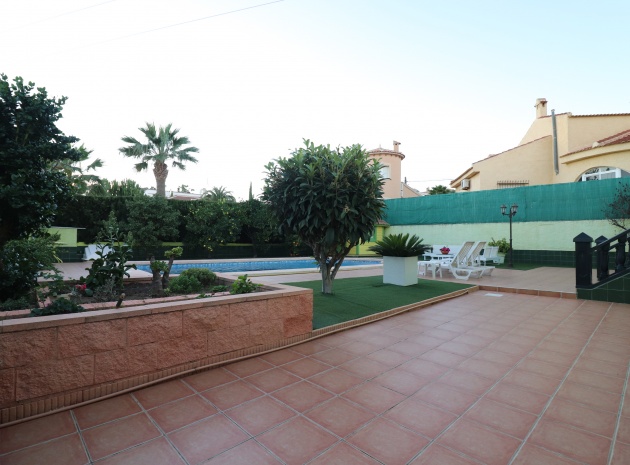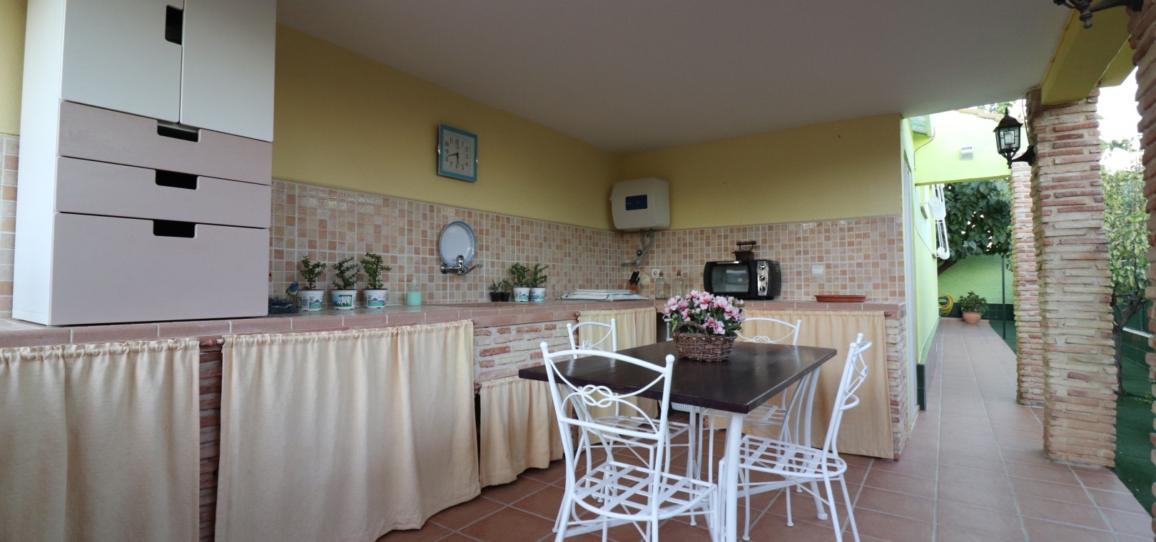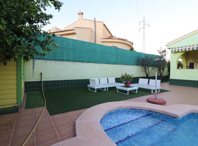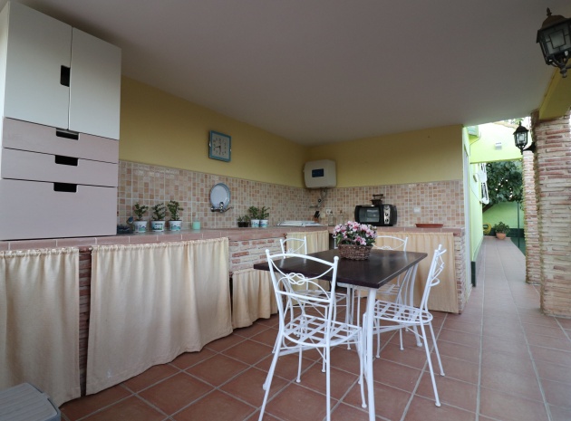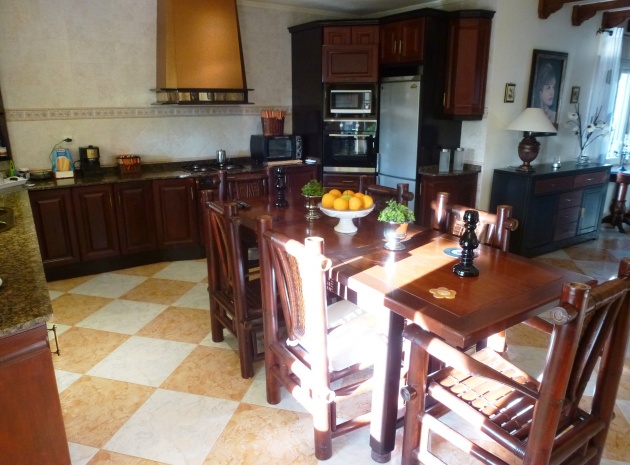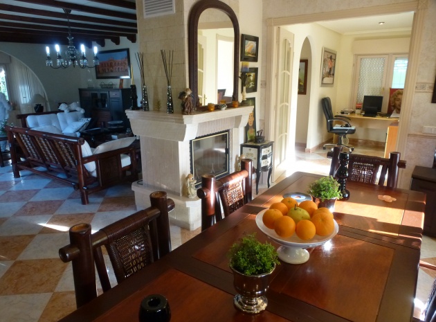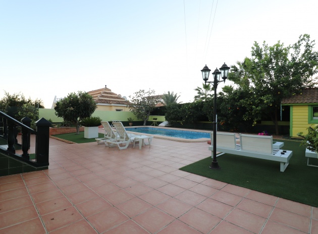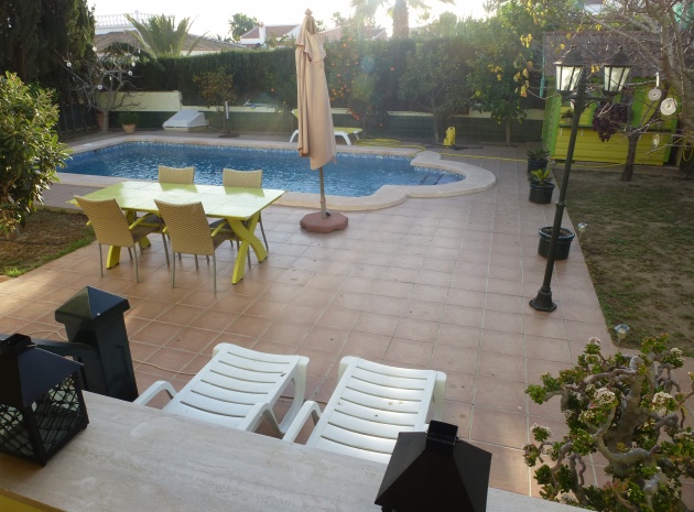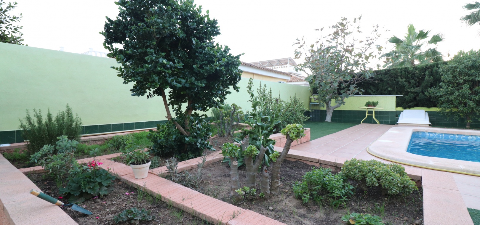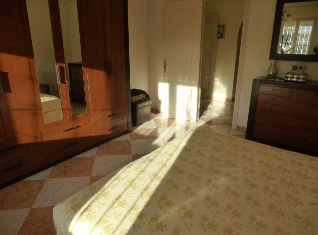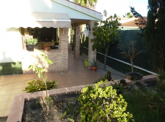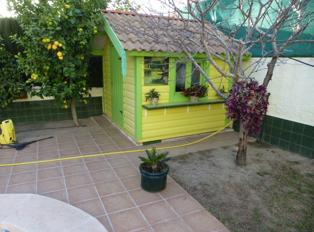 Denna personligt designade fristående villa med tre sovrum av hög kvalitet i Ciudad Quesada ligger centralt i denna livliga och mycket populära stad, inom 5 till 10 minuters promenad från ett brett utbud av barer och restauranger, butiker, stormarknader, tobaksaffär, apotek, banker, vårdcentral, optiker, resebyråer, gym, frisörer, bowling, minigolf och mer... De närmaste stränderna ligger vid Guardamar del Segura, bara 12 minuters bilresa bort. Denna vackra, välskötta fastighet består av en extremt rymlig bottenvåning med en vacker svängd entré; som öppnar upp mot det stora vardagsrummet med träbjälkar; ett öppet fullt utrustat kök med ett stort matbord och en dubbelsidig öppen spis som värmer upp hela vardagsrummet; en bred hall som för närvarande erbjuder ett skrivbord; med två mer än dubbelsidiga sovrum utanför; och ett familjebadrum. Från köket finns dubbeldörrar ut till den bakre täckta terrassen, perfekt för att äta utomhus med utsikt över den vackra trädgården och den privata poolen. Utvändiga trappor leder till den helt fristående första våningen; där det finns en separat lägenhet eller gästrum, bestående av ett öppet, fullt utrustat kök med matplats, soffa och utgång till den omgivande terrassen; en bred hall som för närvarande har våningssäng; som leder fram till det magnifika sovrummet med dubbelsäng, med klädkammare och dubbeldörrar ut till en privat terrass. Båda terrasserna på första våningen har panoramautsikt över området och saltsjöarna bortom. Utomhus finns ett kök, duschrum och toalett, gott om uteplatser för matplats och solbad, olika fruktträd, trädgårdsskjul och en lång uppfart, som är den enda anslutningen till vägen, vilket gör denna fastighet ganska privat! Extrafunktioner inkluderar luftkonditionering i vardagsrummet, köket och master bedroom, galler över hela bottenvåningen, vattenavhärdare och mer...