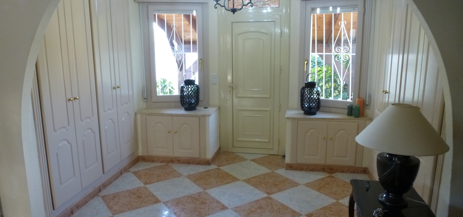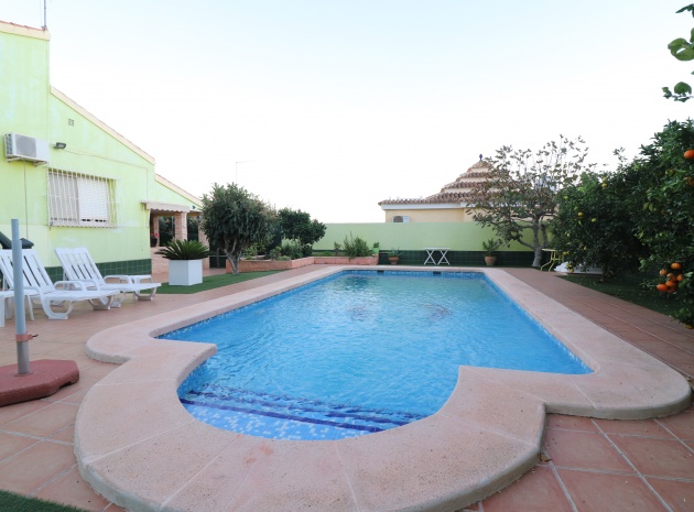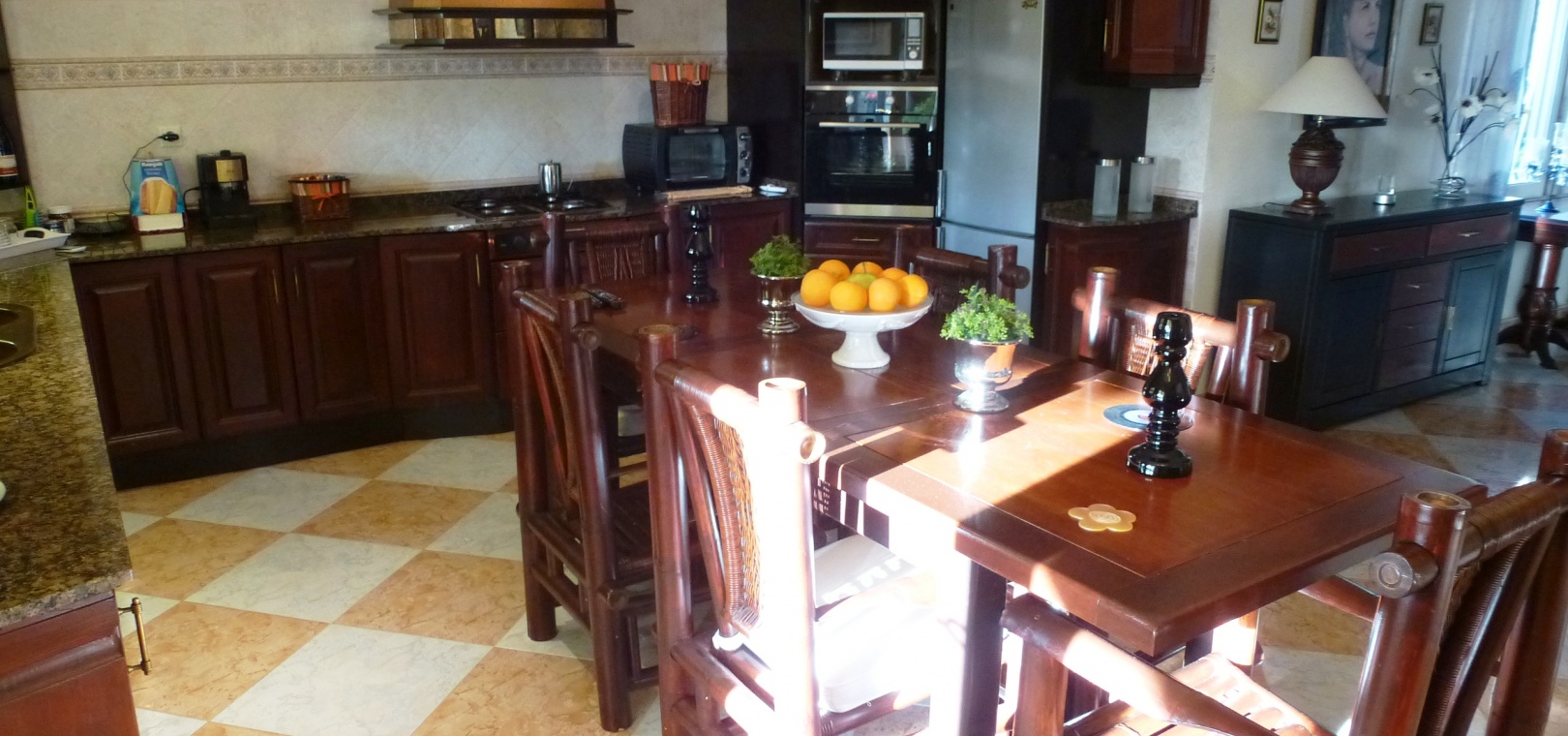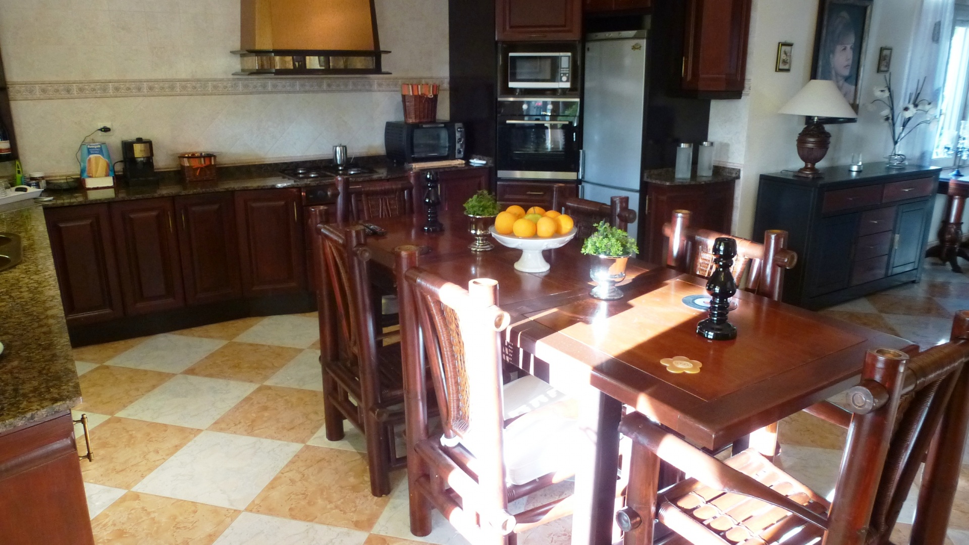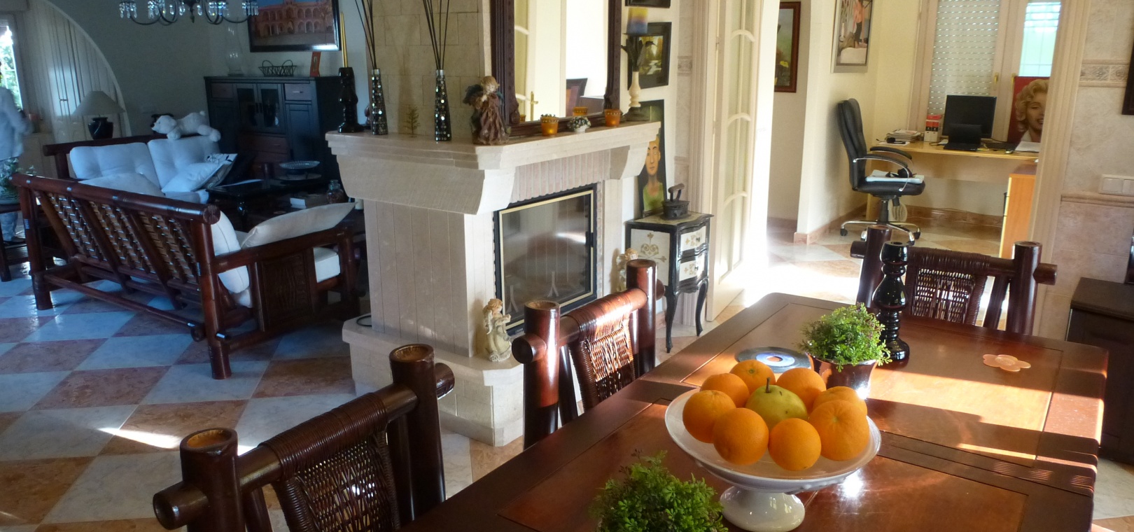 Denna personligt designade fristående villa med tre sovrum av hög kvalitet i Ciudad Quesada ligger centralt i denna livliga och mycket populära stad, inom 5 till 10 minuters promenad från ett brett utbud av barer och restauranger, butiker, stormarknader, tobaksaffär, apotek, banker, vårdcentral, optiker, resebyråer, gym, frisörer, bowling, minigolf och mer... De närmaste stränderna ligger vid Guardamar del Segura, bara 12 minuters bilresa bort. Denna vackra, välskötta fastighet består av en extremt rymlig bottenvåning med en vacker svängd entré; som öppnar upp mot det stora vardagsrummet med träbjälkar; ett öppet fullt utrustat kök med ett stort matbord och en dubbelsidig öppen spis som värmer upp hela vardagsrummet; en bred hall som för närvarande erbjuder ett skrivbord; med två mer än dubbelsidiga sovrum utanför; och ett familjebadrum. Från köket finns dubbeldörrar ut till den bakre täckta terrassen, perfekt för att äta utomhus med utsikt över den vackra trädgården och den privata poolen. Utvändiga trappor leder till den helt fristående första våningen; där det finns en separat lägenhet eller gästrum, bestående av ett öppet, fullt utrustat kök med matplats, soffa och utgång till den omgivande terrassen; en bred hall som för närvarande har våningssäng; som leder fram till det magnifika sovrummet med dubbelsäng, med klädkammare och dubbeldörrar ut till en privat terrass. Båda terrasserna på första våningen har panoramautsikt över området och saltsjöarna bortom. Utomhus finns ett kök, duschrum och toalett, gott om uteplatser för matplats och solbad, olika fruktträd, trädgårdsskjul och en lång uppfart, som är den enda anslutningen till vägen, vilket gör denna fastighet ganska privat! Extrafunktioner inkluderar luftkonditionering i vardagsrummet, köket och master bedroom, galler över hela bottenvåningen, vattenavhärdare och mer...